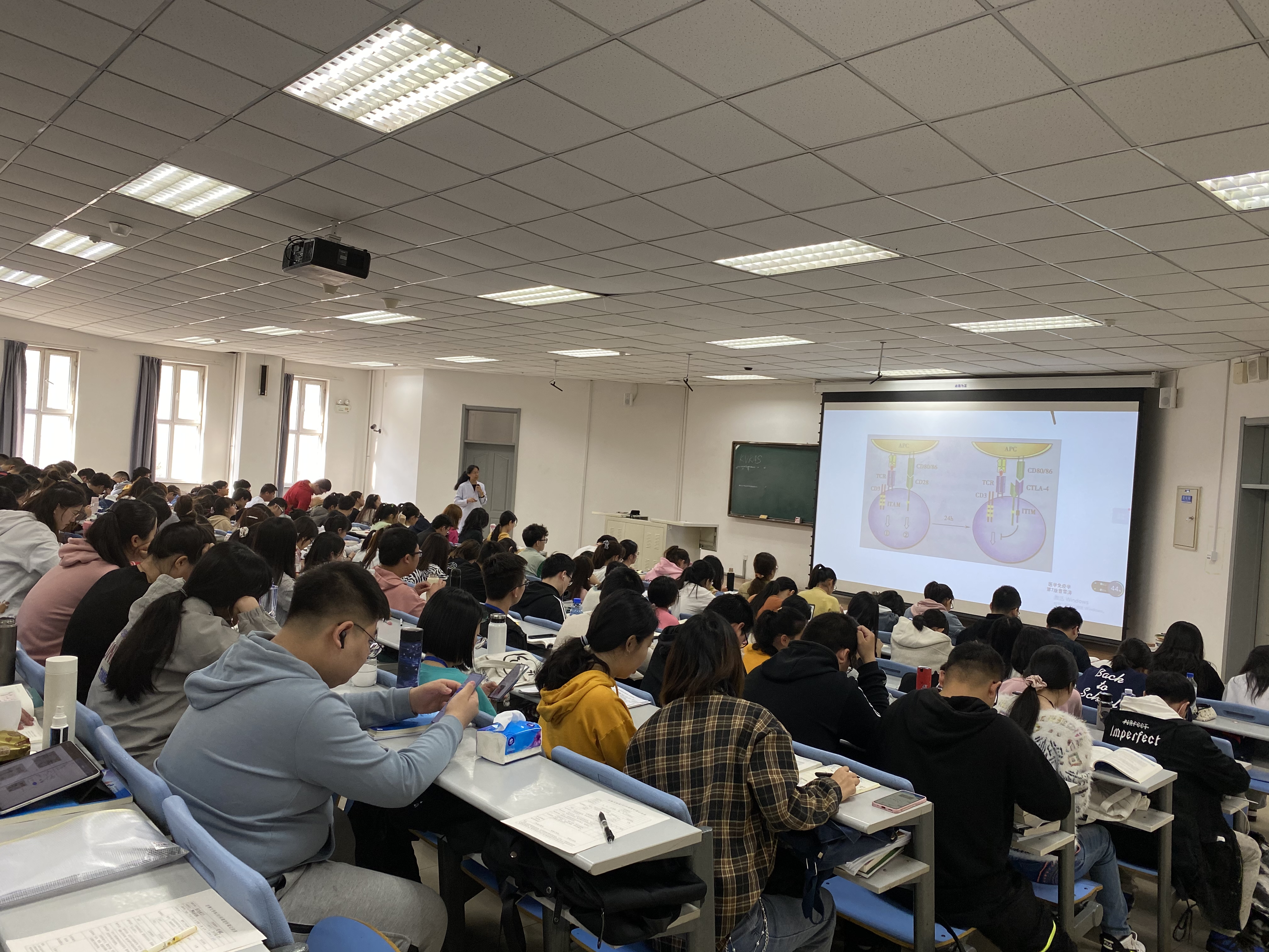 付海英老师讲授的医学免疫学,采用线上线下混合式教学模式,在讲授过程中注重学习方法的传授,培养学生自主学习的能力,课堂气氛活跃。教学现场,学院领导聚精会神的听取教师授课,并对教师的课堂授课情况作了详细记录;课后,与授课教师对备课情况、教学设计和课堂效率等方面进行深度交流;此外学院领导还与学生们做了亲切的交谈,征询大家对基础医学教学的意见和建议。