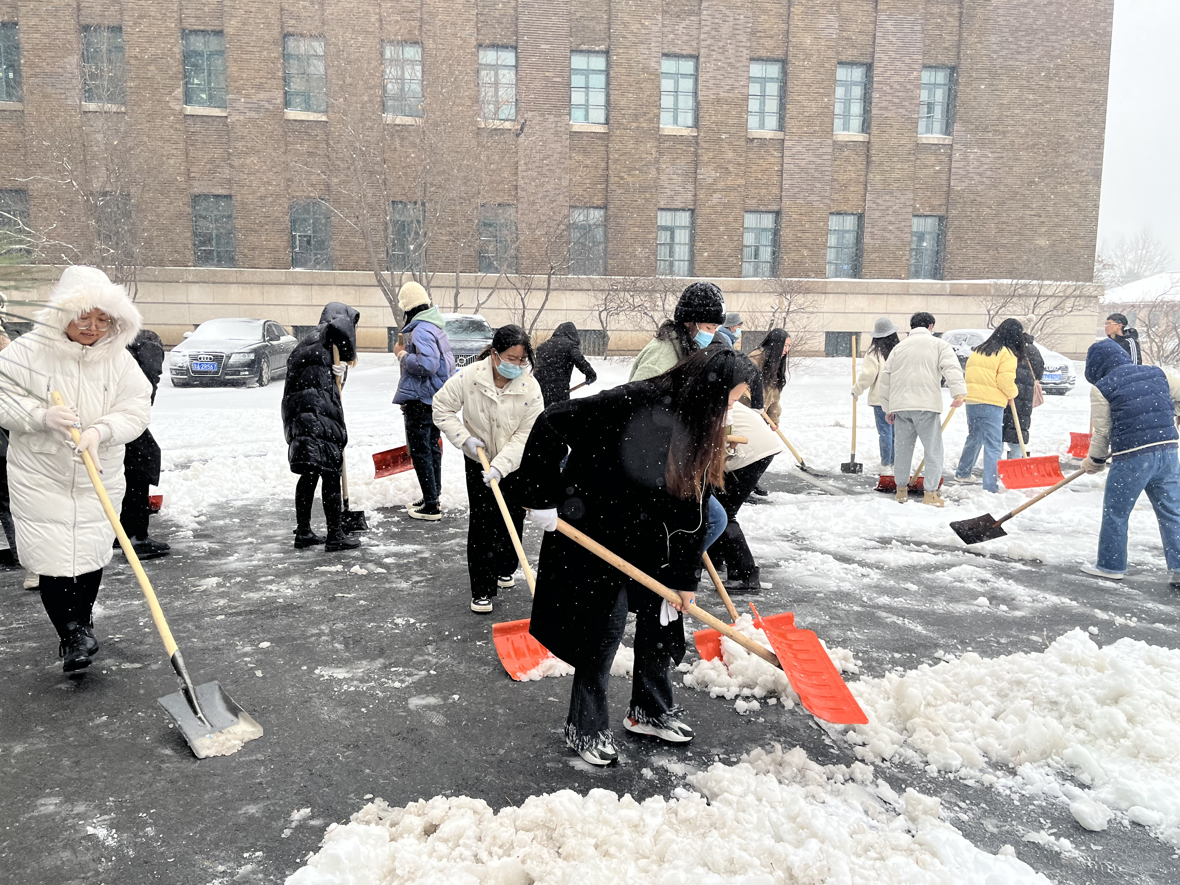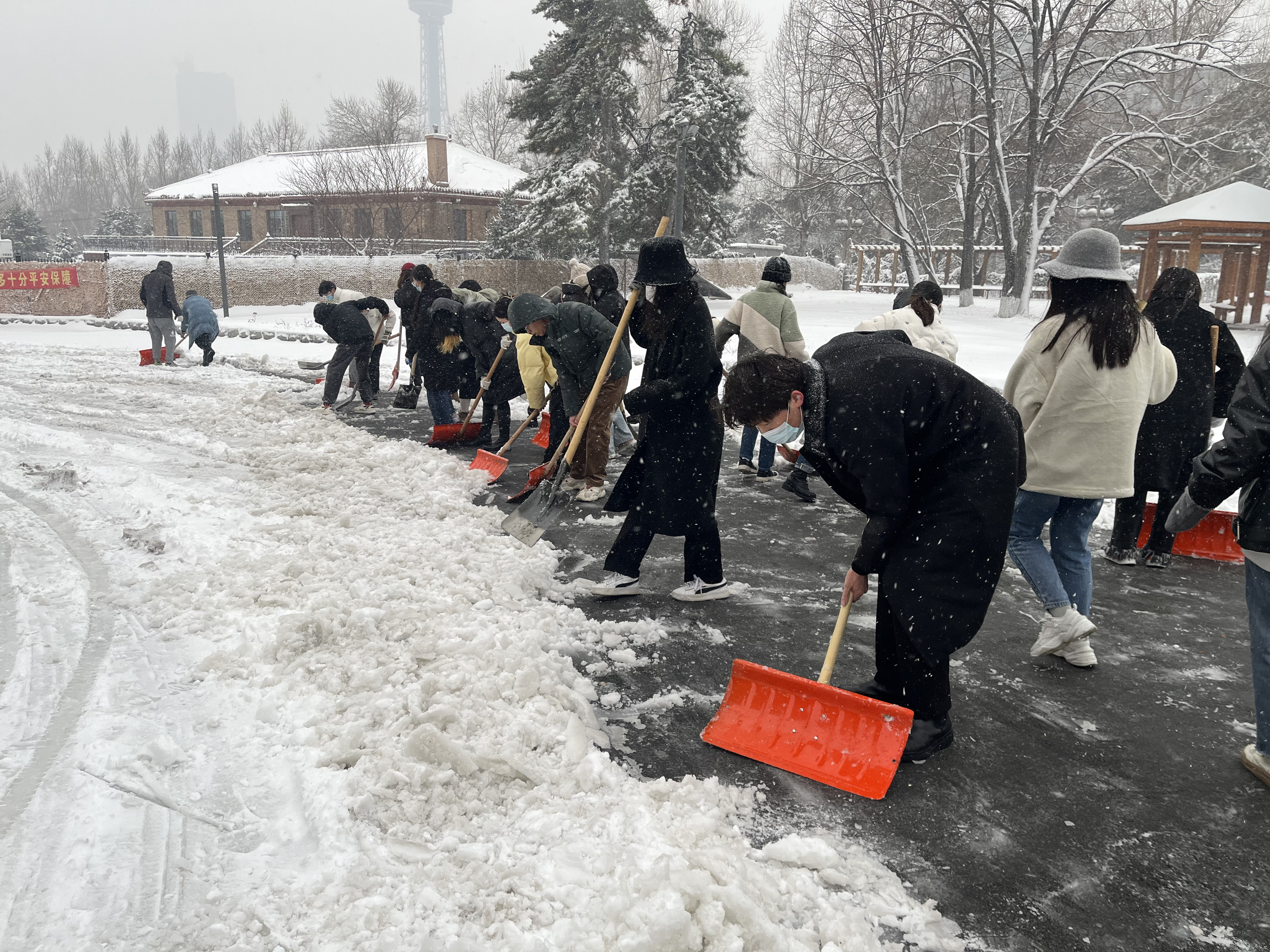 开展研究生劳动教育,组织全体研究生进行了扫雪除冰活动。