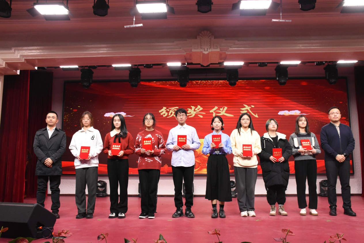 院长王放为2023年度研究生国家奖学金、求实奖学金获得者颁发荣誉证书。