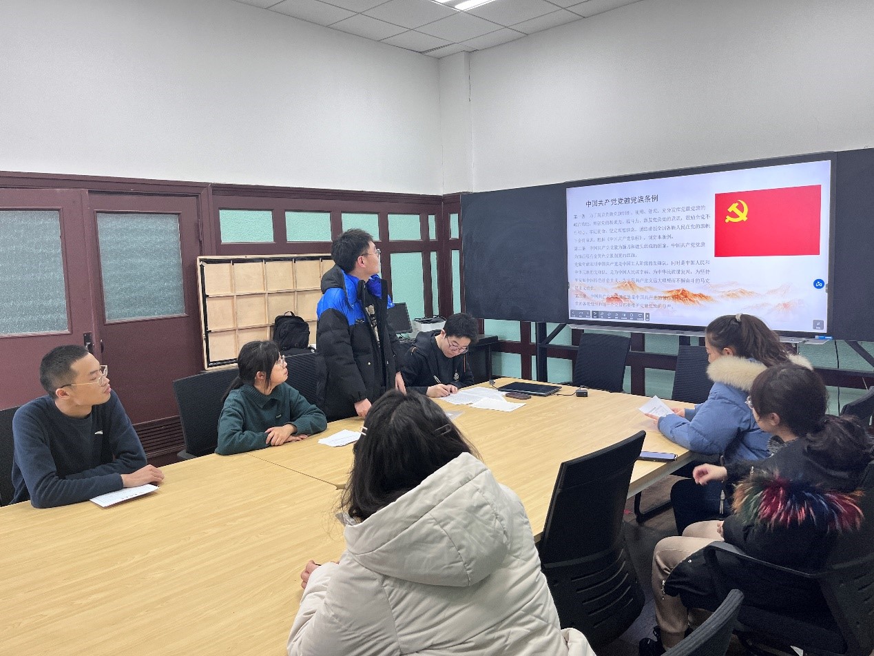 活动中,党总支书记孙佳钰老师带领同学们就《中国共产党党徽党旗条例》中党徽党旗生产制作、使用管理、监督问责等24条内容进行了详细学习,精准掌握党徽党旗的通用尺度、应当使用情形、可以使用情形以及禁止使用情形等相关规定,要求全体党员按照《条例》规定用好党徽党旗,充分发挥党徽党旗的政治功能,增强党的凝聚力、战斗力。王超同志表示:“通过这次活动,我更加详细的了解了党徽党旗的样式与意义、党徽党旗的通用尺度和使用规范、党徽党旗及其图案的使用情形等。中国共产党的党徽党旗是中国共产党的象征和标志,党的各级组织和每一个党员都要维护党徽党旗的尊严,要规范使用党徽党旗及其图案,尊重和爱护党徽党旗。