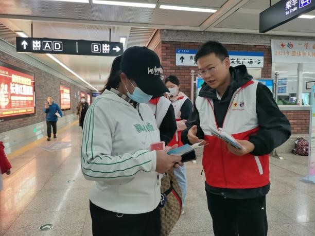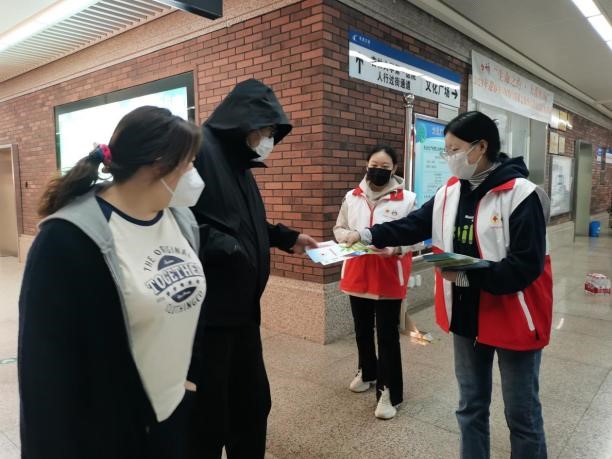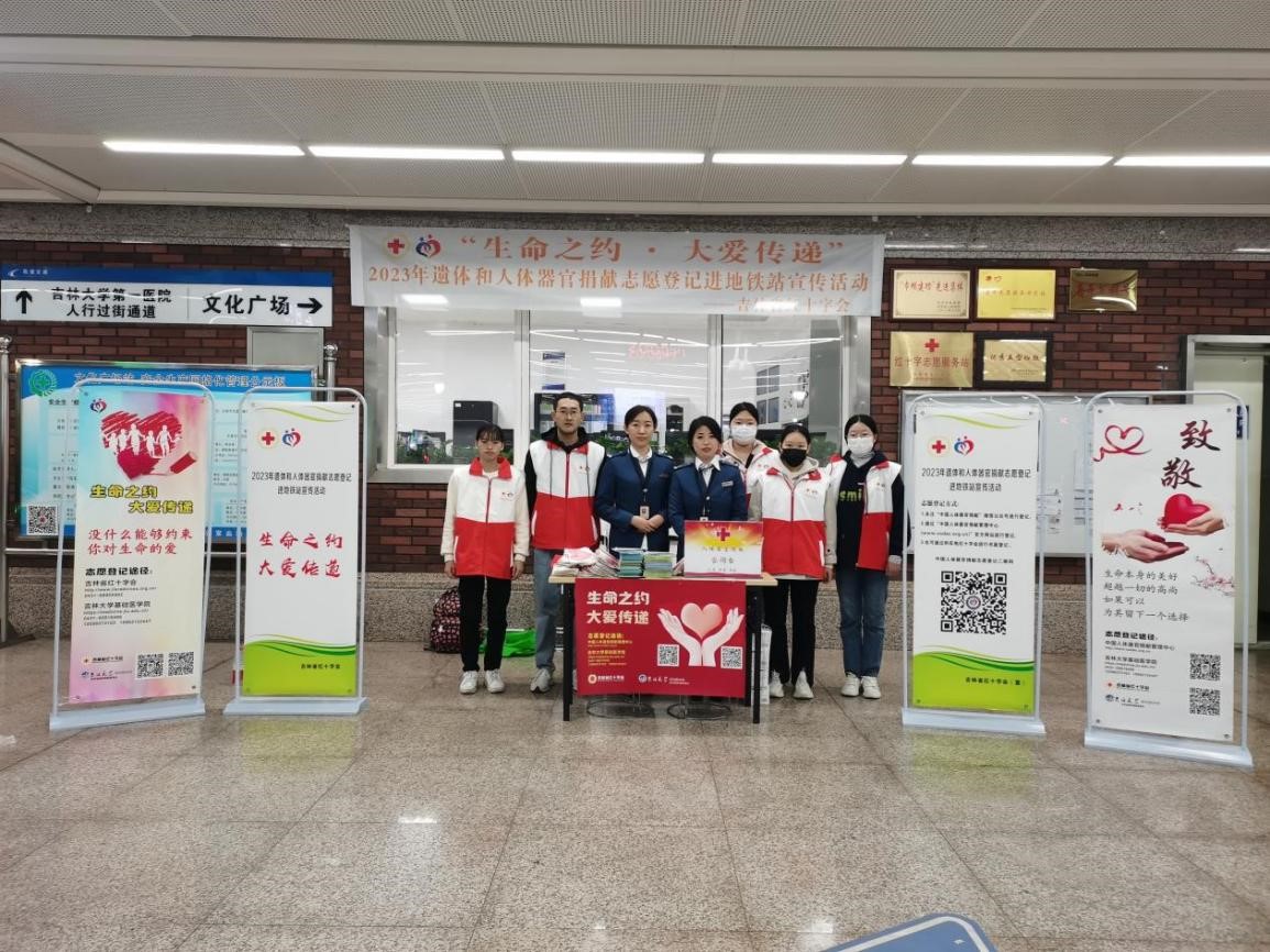 团委负责人、研究生辅导员孙佳钰老师的带领下在吉林省长春市文化广场地铁站开展了“人道关爱•红色传承”遗体和人体器官捐献志愿登记进地铁宣传活动。