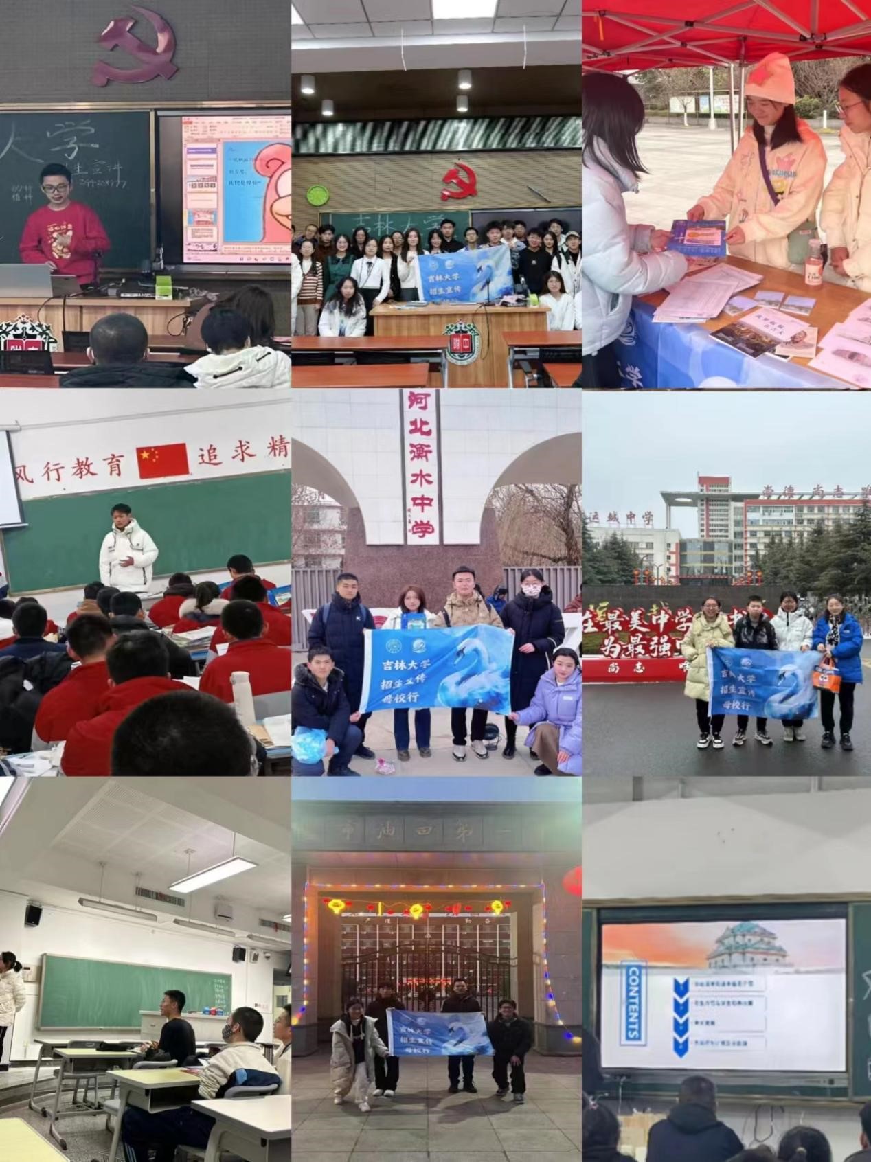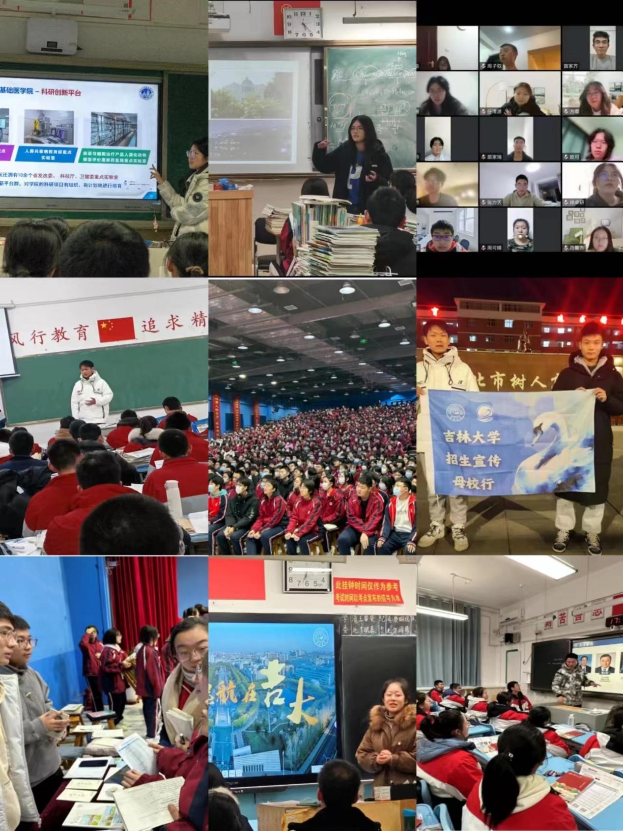 宣讲团由24位具有良好的人际沟通能力和表达能力的同学组成,实现了中心校区-新民校区双校区联合,同学们自发组成22个队伍,与其他学院的校友一同返回高中母校,通过线下宣讲答疑、线上线下联动、公众平台展播等形式,积极向五湖四海的同学们讲好吉大故事,传播好吉大声音,努力让更多优秀的同学认识吉大、了解吉大、情定于吉大。