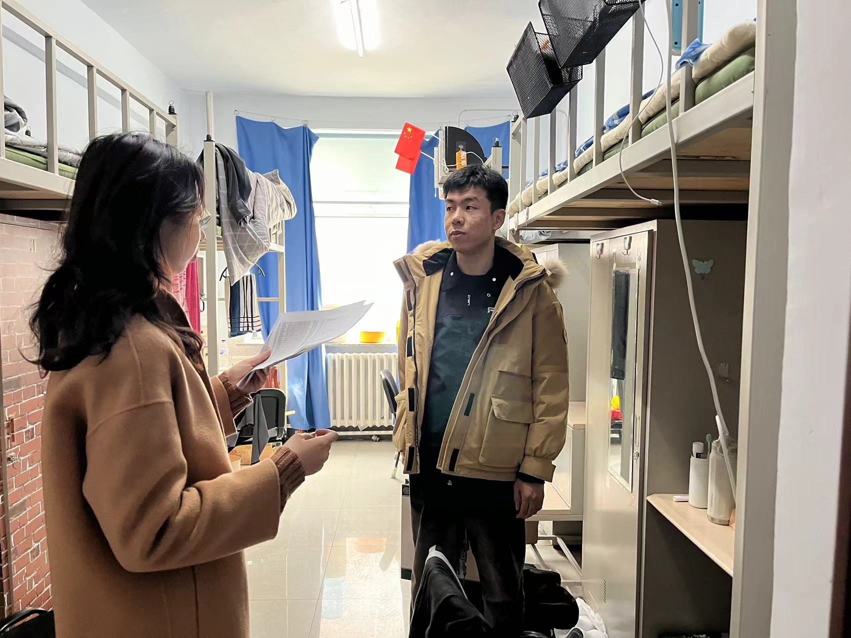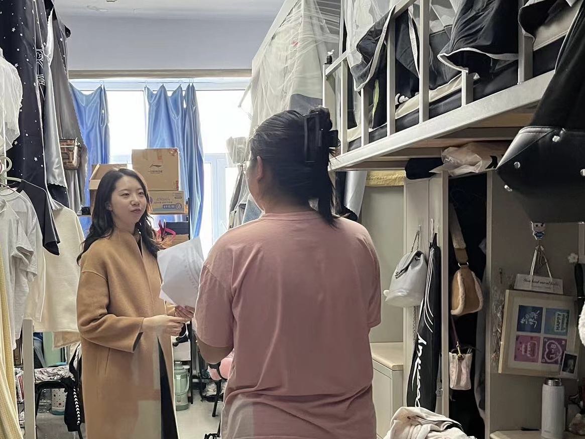 研究生辅导员孙佳钰于4月1日对学院研究生寝室进行走访。
