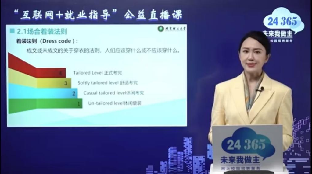 始终将就业指导工作作为研究生培养的重要环节,依托教育部“互联网+就业指导”公益平台资源,结合学院医学专业特色,推出系列化、精准化的职业能力提升活动。此次《职场形象礼仪》直播课聚焦职场“第一印象”打造,旨在帮助研究生从细节入手,掌握面试礼仪、职场沟通、职业形象管理等实用技能,为即将到来的求职季与未来职业发展奠定坚实基础。本次直播课特邀北京理工大学就业指导中心主任助理田静老师担任主讲嘉宾,课程内容涵盖职场形象礼仪的多个方面,主要从职场形象管理、着装规范、细节塑造、面试礼仪等方面进行了详细的介绍。