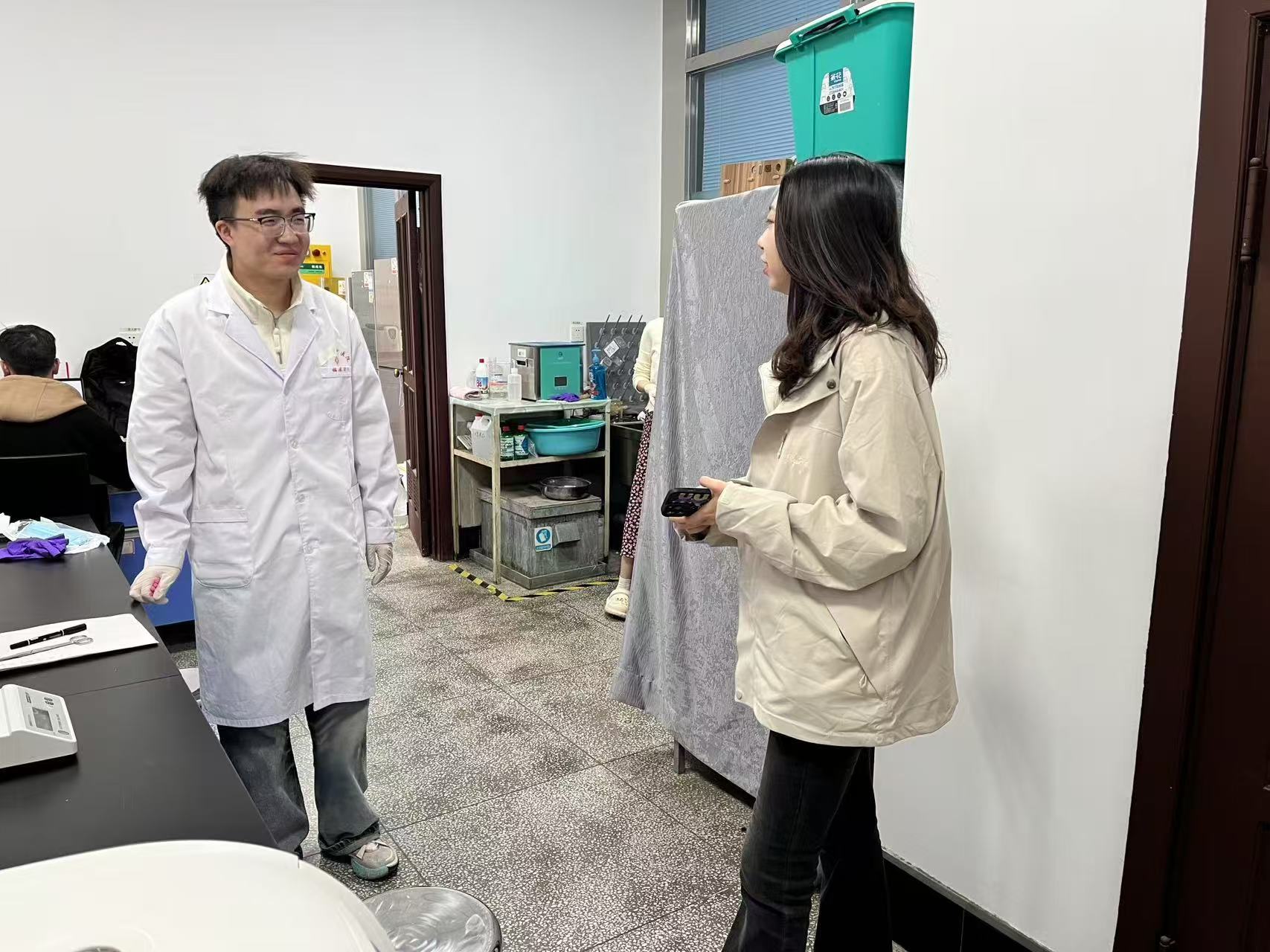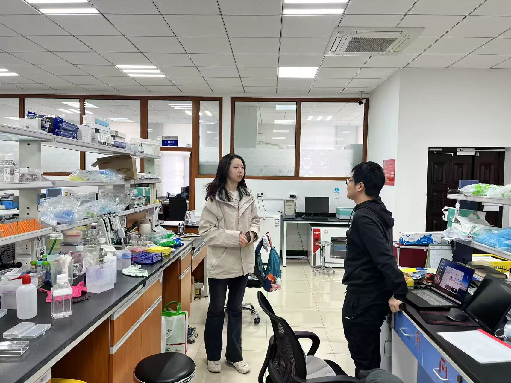 检查过程中,辅导员孙佳钰老师结合现场情况,与在场研究生进行了交流,详细了解同学们近期科研实验、生活状况及假期安排情况,并就研究生工作室和宿舍用电安全、环境卫生维护、公共空间规范使用等事项进行了提醒,引导同学们增强安全意识和规范意识,自觉维护良好的学习和生活环境。