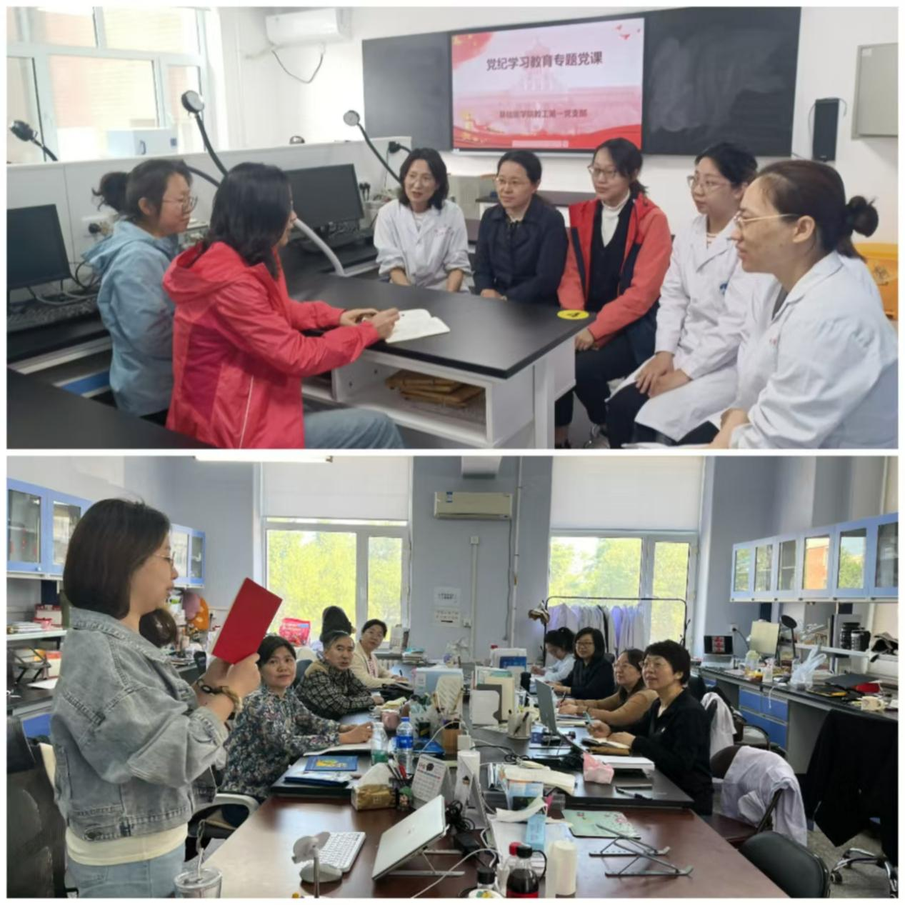 教工第一党支部组织开展党纪教育专题党课,分组传达学习《中国共产党纪律处分条例》,本次课程由支部书记刘芬同志主持。