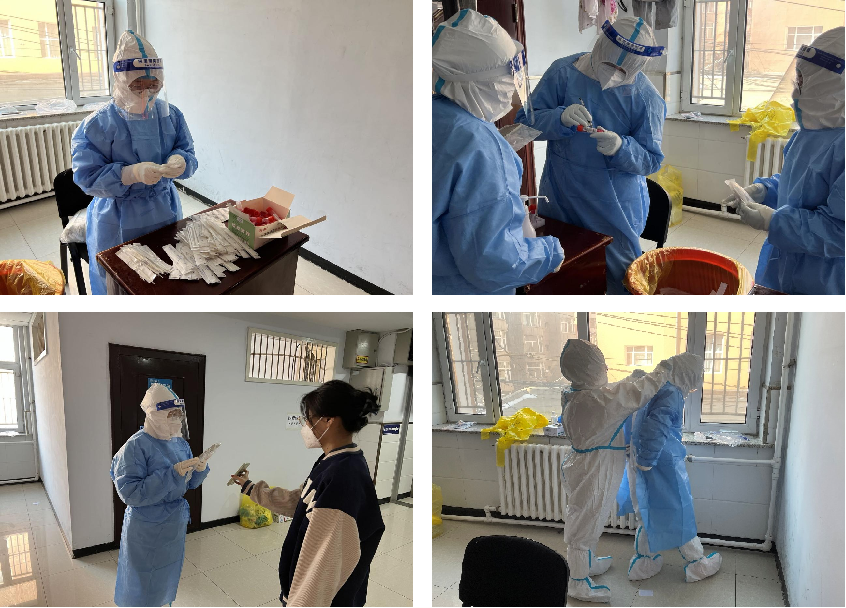 的两名研究生张娜、周正洁主动请缨,自愿承担起组织排队和扫码的志愿者重任。自封闭校园管理以来,他们身着密不透风的防护服组织全楼五百余人进行了三次入楼核酸检测,一波接一波的同学做完核酸有序离开,她们却始终坚定地守在岗位上。双腿的肿胀,双肩的麻木,让正直青春年华的她们,像年迈的老人一样时不时地用手捶打着酸痛的腰。瘦弱的身躯有着坚定的意志,防护装备遮挡住了她们的样貌,却遮挡不住她们那颗发光的心。