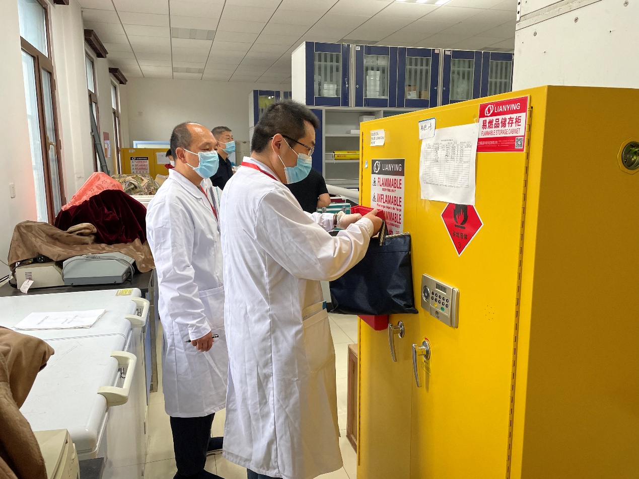 为切实加强实验室安全管理,全面排查实验室安全隐患,2022年6月22日上午,由实管处宋阳科长带领专家组来我院对实验室生物安全、危险化学品进行安全检查工作。孙巍、陈龙副院长陪同检查。