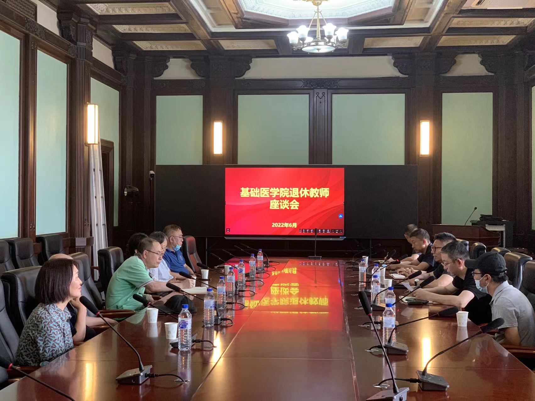 在409会议室举行2022年退休教师座谈会。学院党委书记王晓荣、院长王放带领学院领导班子和职能科室相关工作人员与本年度退休的教师们共话今昔,展望未来。会议由学院党委书记王晓荣主持。