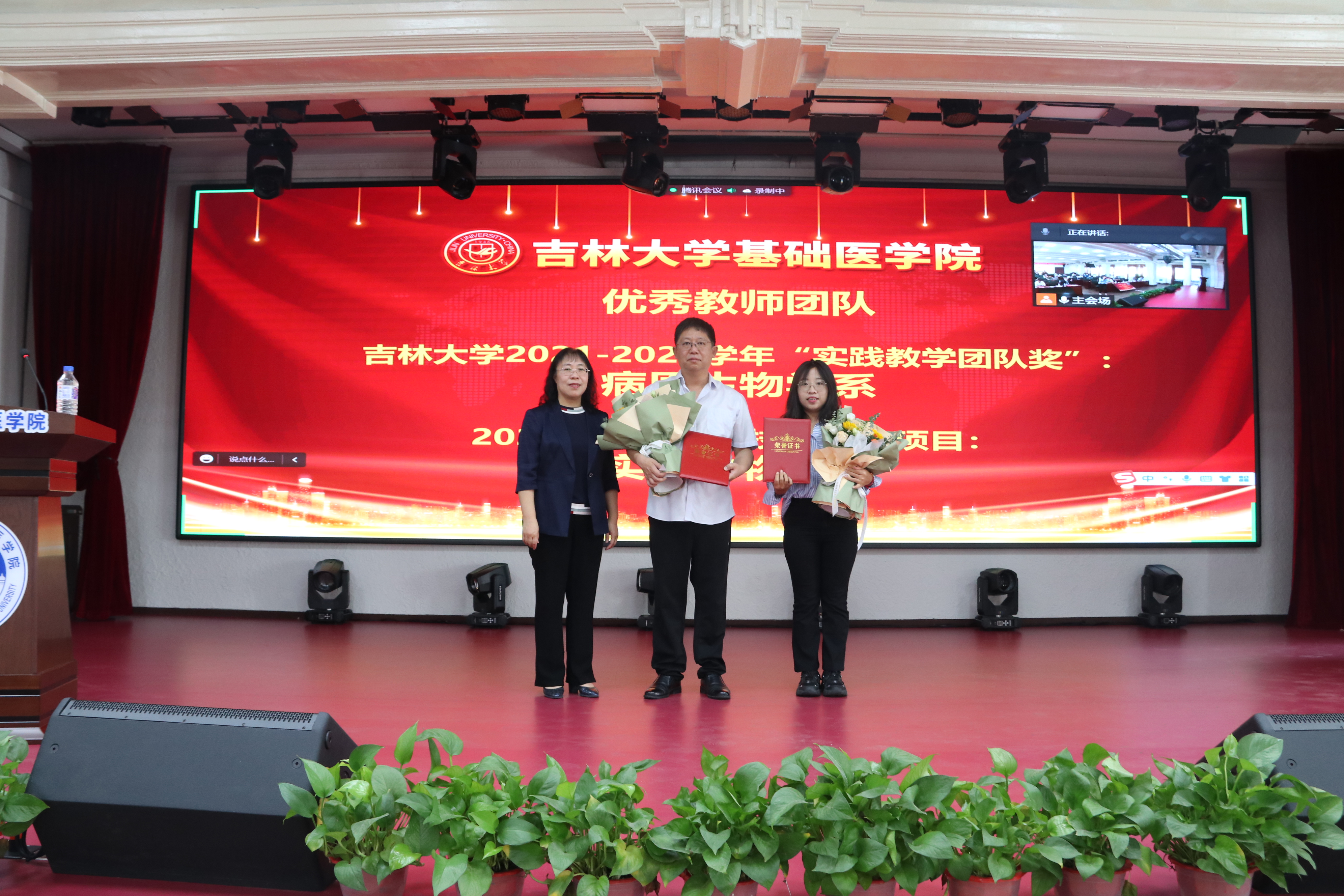 李洪岩副院长宣读了《关于向校级及以上各级组织表彰奖励教师学习的决定》。刘海岩副院长宣读了先进集体和获奖教师表彰奖励决定。学院决定授予于永利等3名教师为学院“师德先进个人”荣誉称号;病原学系等2个团队为优秀教师团队;于军等76名教师为学院“优秀教师”荣誉称号;王艳玲等7名教师为“管理辅助先进个人”荣誉称号。