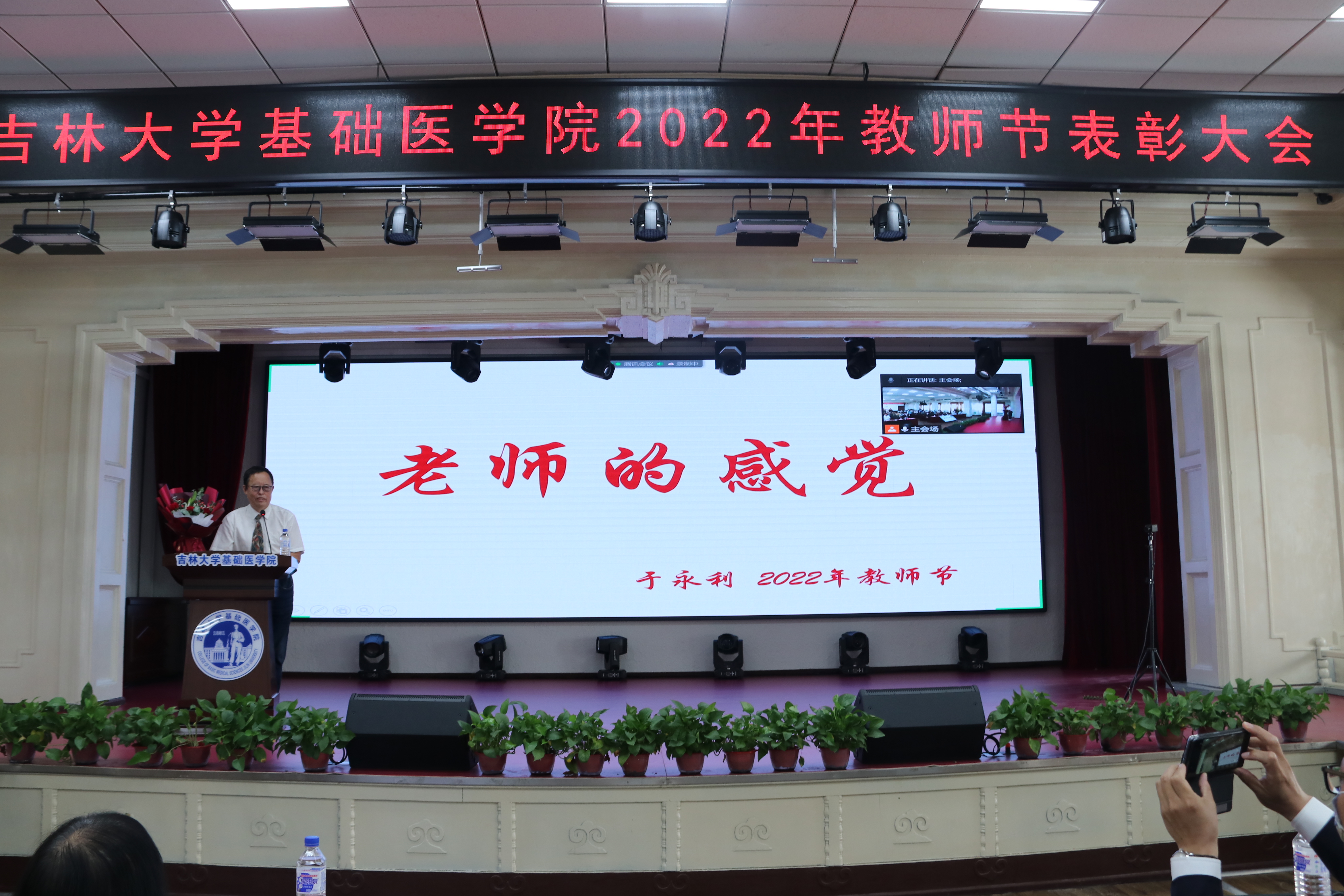 隆重召开2022年教师节表彰大会。学院二十余名驻校教师现场参会,其余教职工与学生共计三百余人以腾讯线上视频会议形式参会。大会由学院副院长辛颖主持。