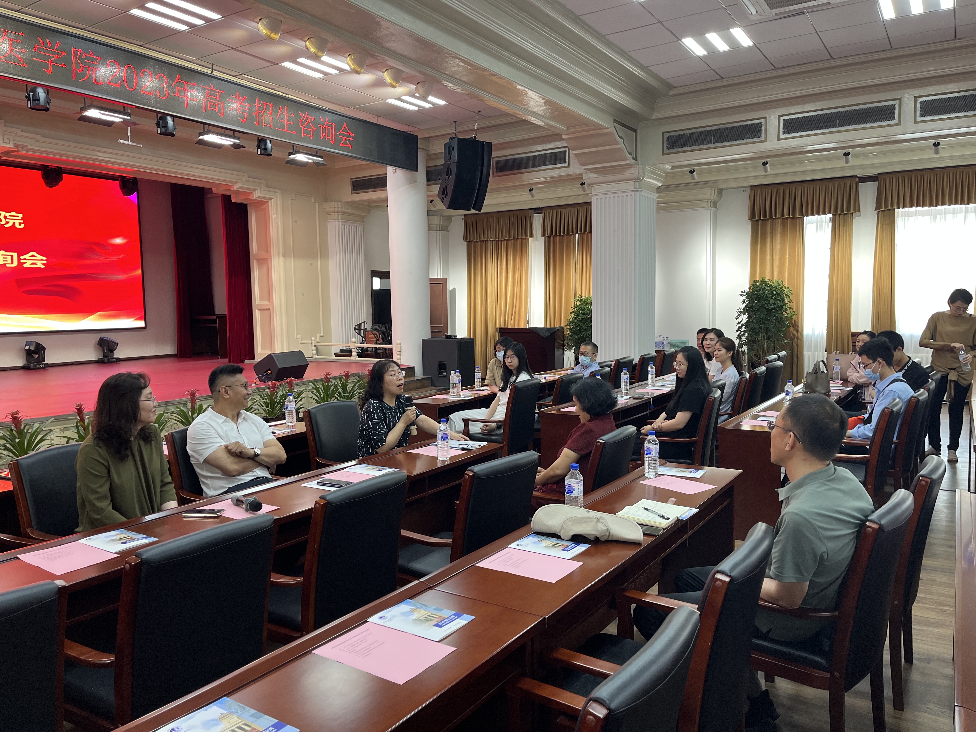 在二楼报告厅举办了2023年高考招生咨询会。院长王放、党委书记王晓荣、副院长辛颖、学院招生宣传团队教师们以及前来咨询的考生和家长参加了本次咨询会,会议由党委副书记李东洋主持。