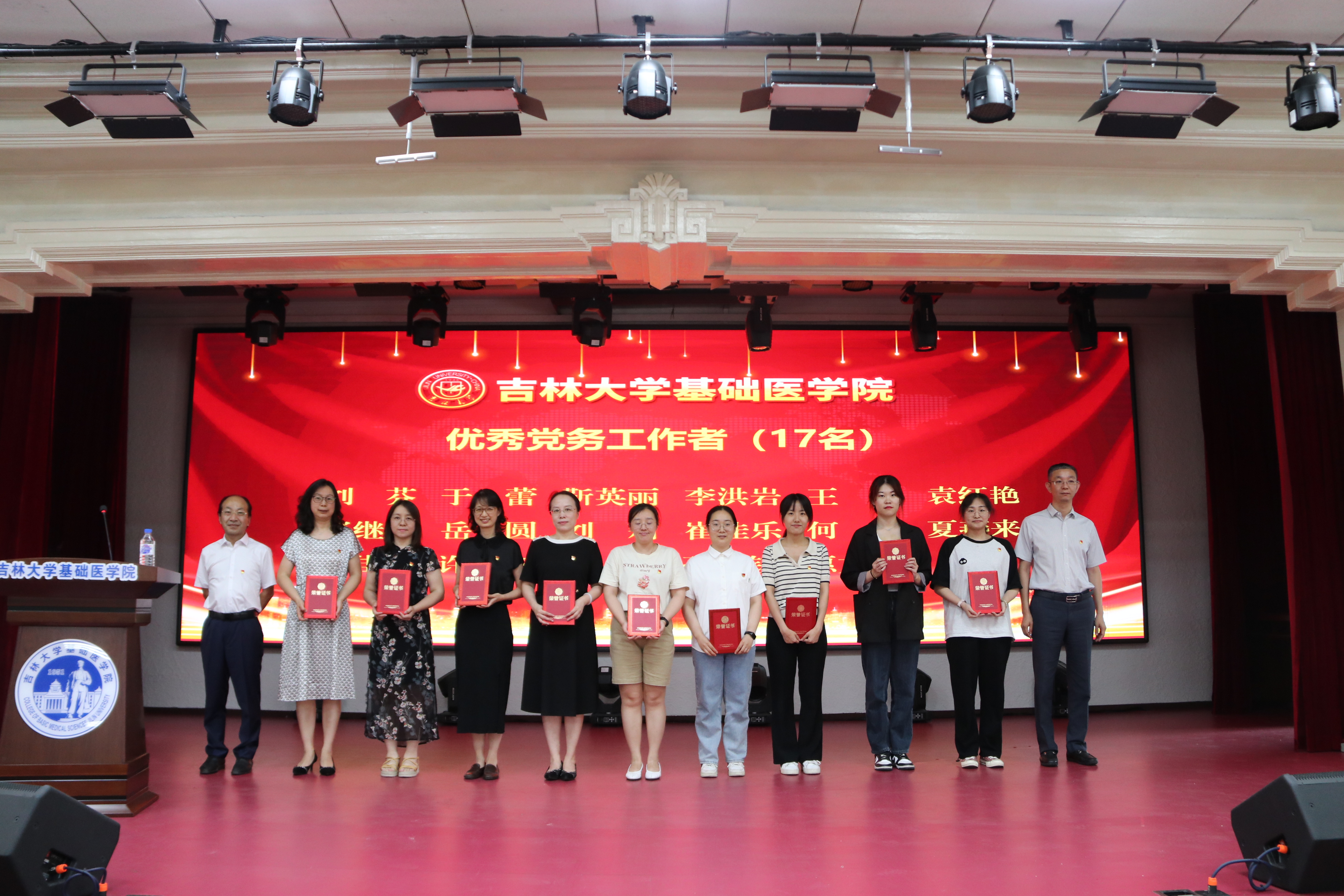 委员会关于表彰优秀共产党员、优秀党务工作者和先进党支部的决定》。学院党委委员、领导班子成员为先进党支部、优秀党务工作者和优秀共产党员代表颁发了荣誉证书。优秀党务工作者刘芬作为代表上台发言。