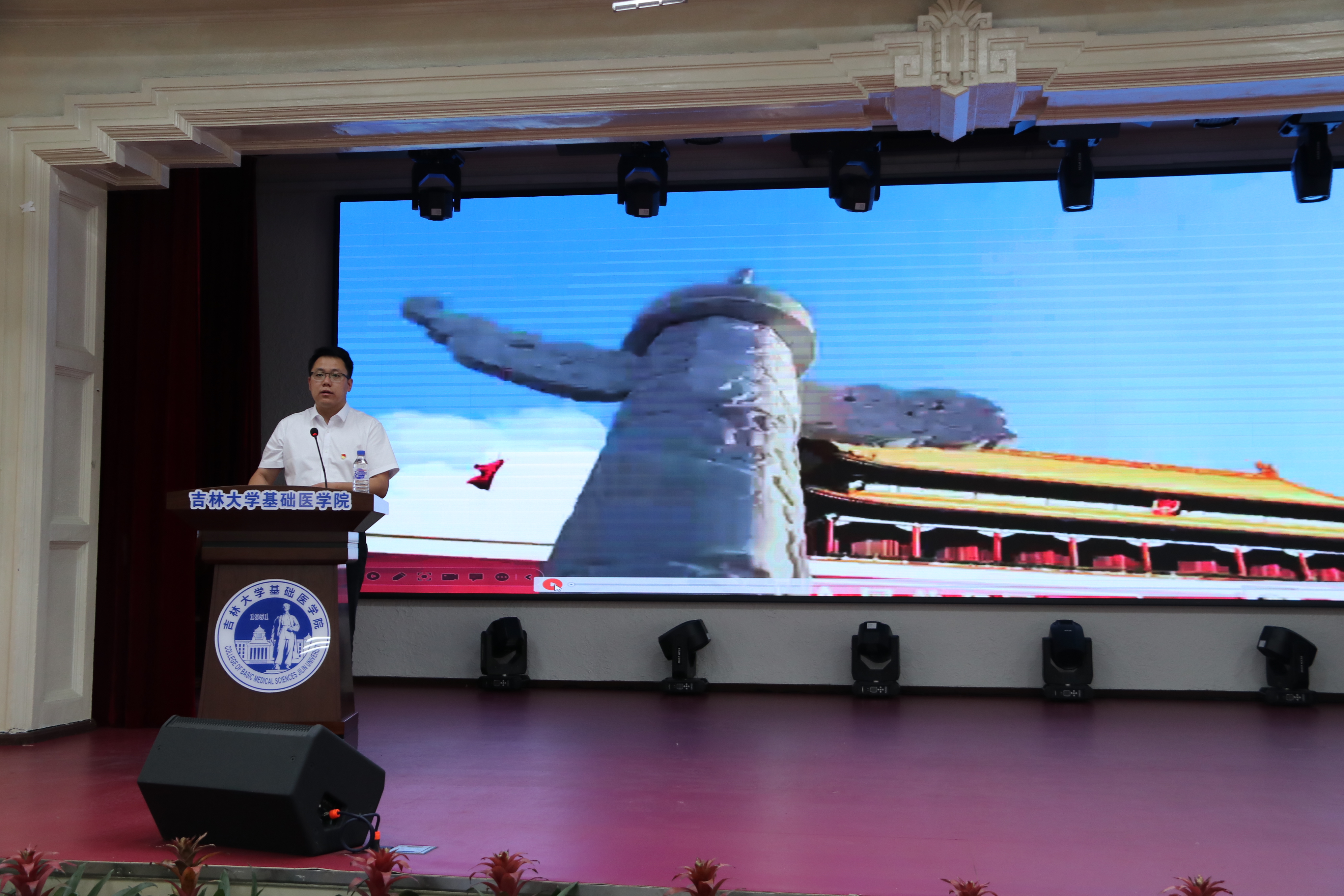 党委书记王晓荣围绕主题教育“学思想、强党性、重实践、建新功”的总要求为全体党员上了一次生动党课。王书记强调,在全党深入开展主题教育活动之际,学院党委认真开展习近平新时代中国特色社会主义思想主题教育活动,有的放矢设计读书班学习,持续推进基础医学教育创新发展。她在讲话中指出,为祖国和人民需要服务是学院创建以来的理想追求和深刻认同的“文化底蕴”,学院党委将团结带领全院师生员工,在教学、科研、人才培养等各个方面不断前行。全院党员同志们要不断加强学习、统一思想,保质保量完成我们的历史使命,不断为学院的发展创造新的历史辉煌。