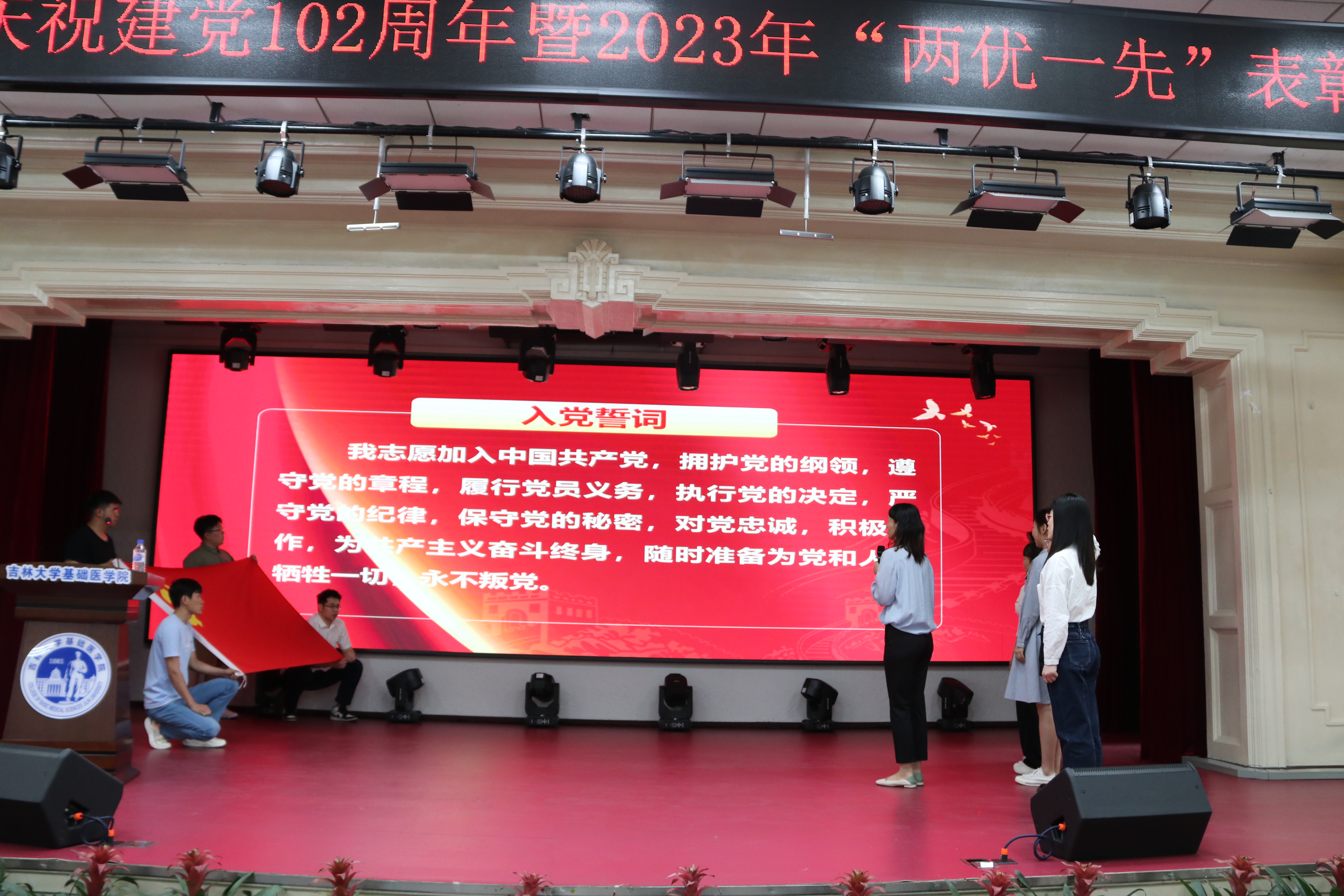最后,党委办公室主任夏燕来同志领誓,所有党员及其新入党的预备党员进行了入党宣誓。