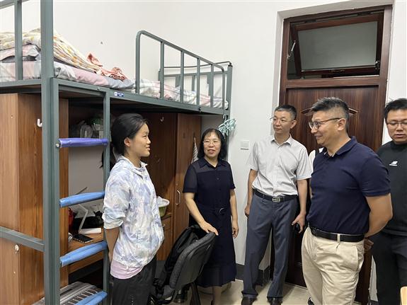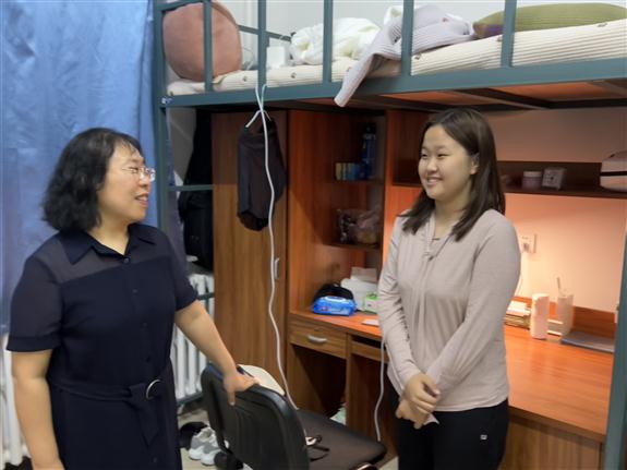 学院领导老师悉心查看了新生的住宿环境,与同学们亲切交谈,逐一询问了新生家庭情况、来校适应情况和报考情况,对于同学们提出的关于学习生活上的问题,给予了耐心细致的解答。