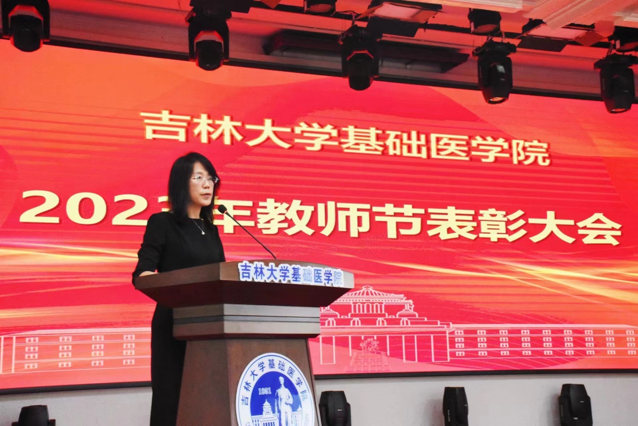 大会在雄壮的国歌声中拉开帷幕。李洪岩副院长宣读了《关于表彰2022—2023年度优秀教师、优秀教师团队等的决定》。学院决定授予李玉林、于永利、李凡、孙连坤、陈霞5名教师“特殊贡献奖”;李一雷、王放2名教师“师德先进个人”荣誉称号;全成实等60名教师“优秀教师”荣誉称号;病理学系、组织学与胚胎学系2个团队“优秀教师团队”荣誉称号;赵航、王博2名教师“管理辅助先进个人”荣誉称号;李平亚、陈维佳2人“特别感谢奖”。