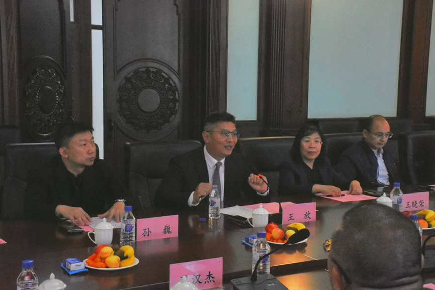 四楼会议室召开座谈交流会。粤港澳大湾区研究会会长曲兆刚、吉林省港澳办港澳处处长陈旭凤及代表团成员、香港色情片
