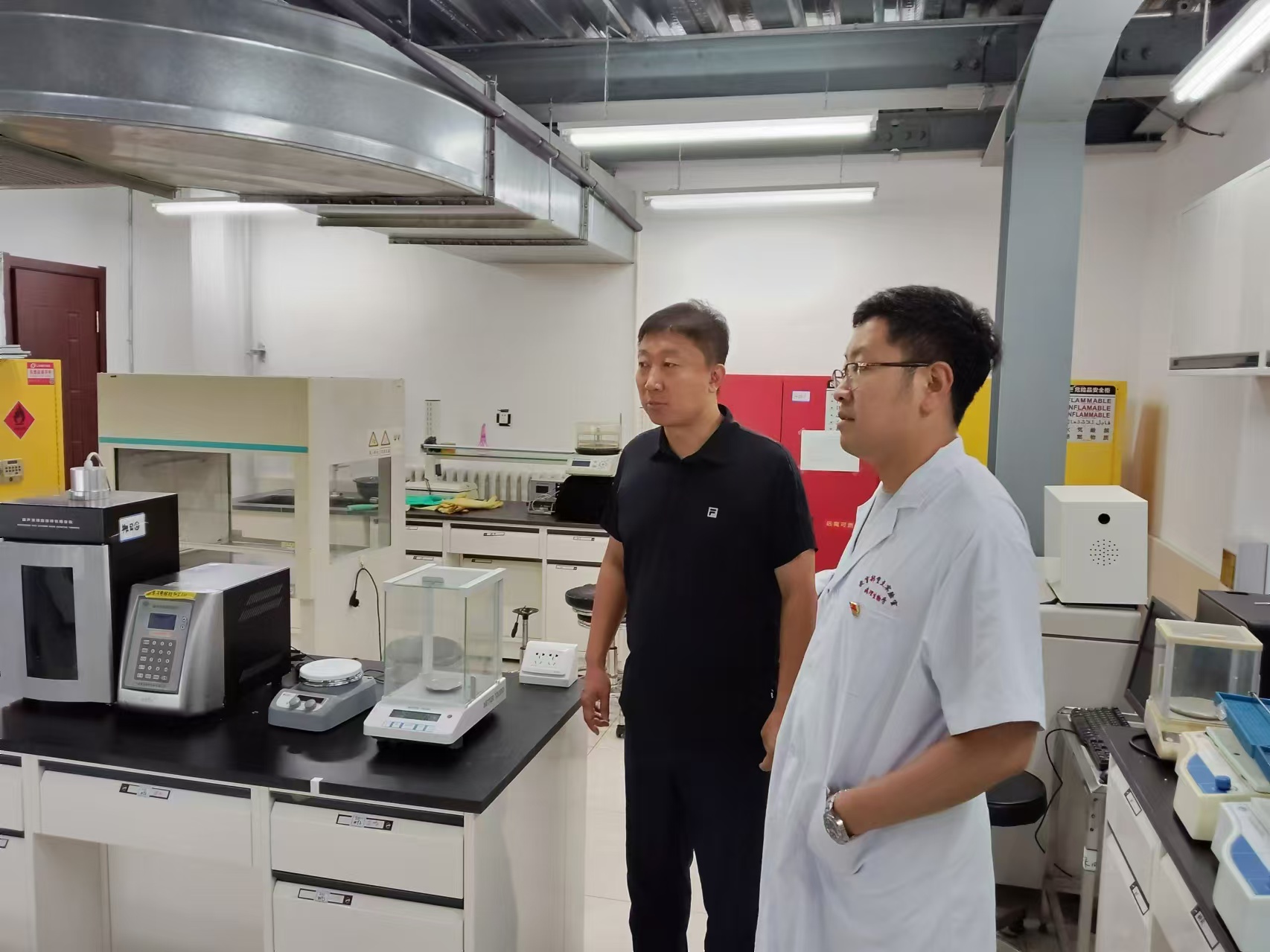 本次检查主要针对学院科研实验室、实验动物中心、基础医学教学实验中心等场所进行了实地踏查,重点对危化品的分类、储存及使用情况,高温高压仪器设备使用情况,水电气使用情况,消防器材配备情况,消防安全疏散通道安全情况,实验废弃物处置情况等进行逐一检查,对检查发现的隐患和问题进行现场反馈。