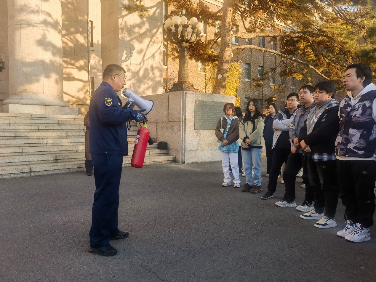 领导班子、研究生及本科生共计100余人参与活动,邀请新民校区保卫处安志成老师现场指导。