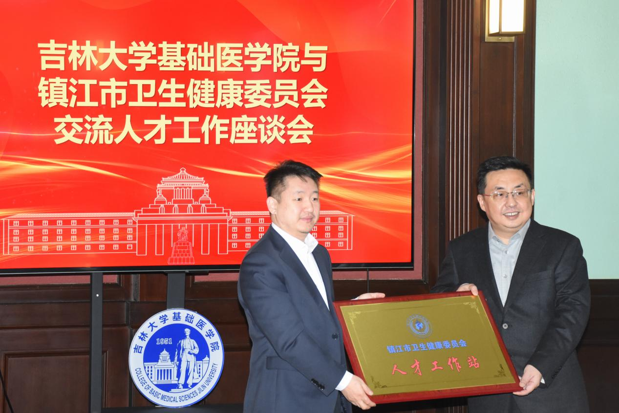 授予“镇江市卫生健康委员会人才工作站”牌匾。