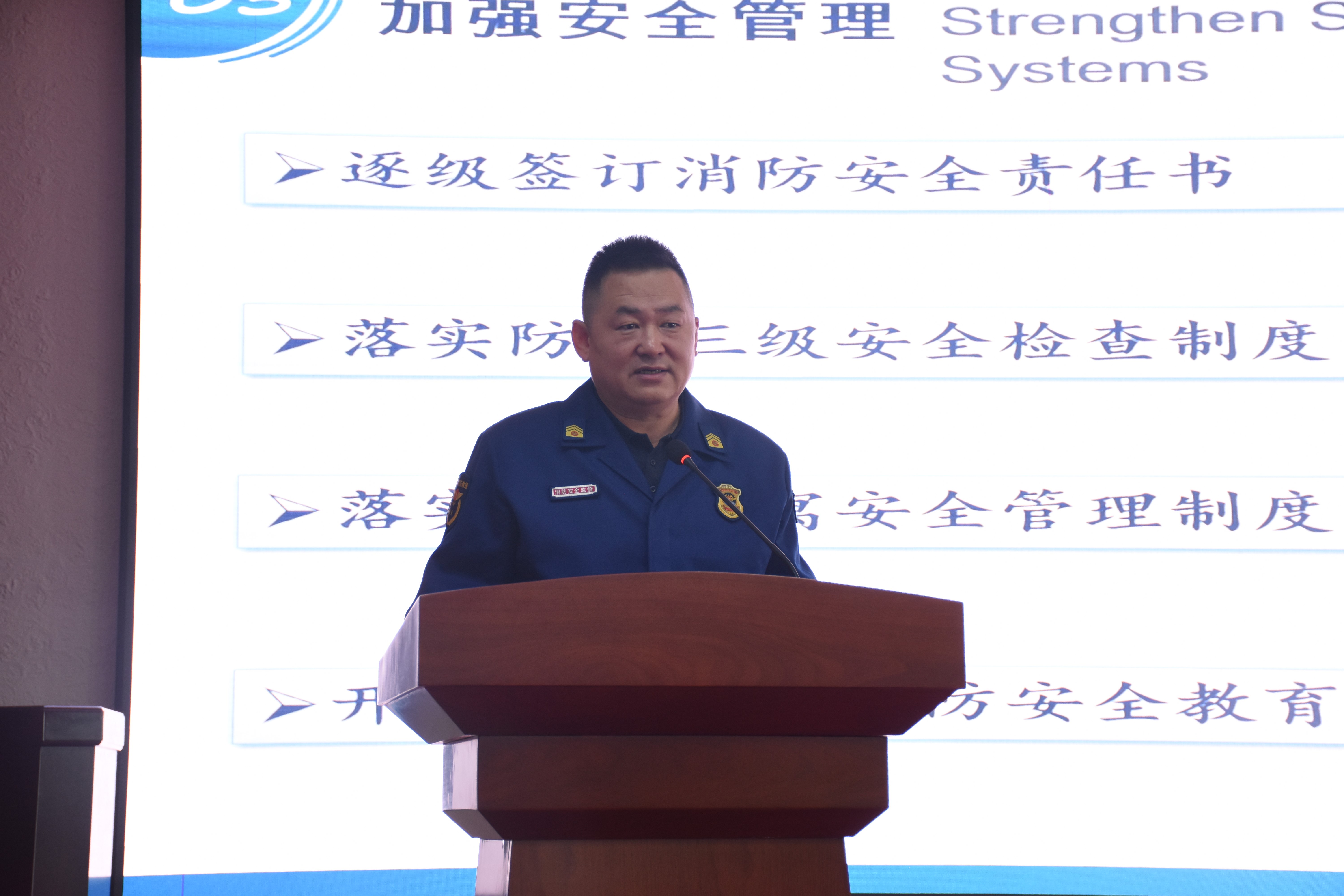 保卫处董立明老师进行了消防安全教育讲座。他首先详细分析了校园火灾的成因,展示了校园火灾的隐患示例以及严重后果,并为学生介绍了安全意识的重要性,以及灭火设施使用、火警报警程序、疏散逃生方法等应急自救措施。