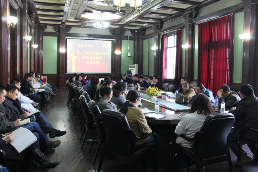 在四楼学术报告厅召开了党的群众路线教育实践活动总结大会。医学部第三督导组组长、医学部党工委副书记兼纪委书记屈英和,督导组成员、第一医院党委副书记兼纪委书记牛跃祥,护理学院党委副书记兼副院长王晓荣,学院党委书记孙赵华等领导班子全体成员、各学系、教研室、实验中心主任、党支部书记、教授代表、教职工代表、管理干部、研究生代表等参加会议。院长孙连坤主持会议。