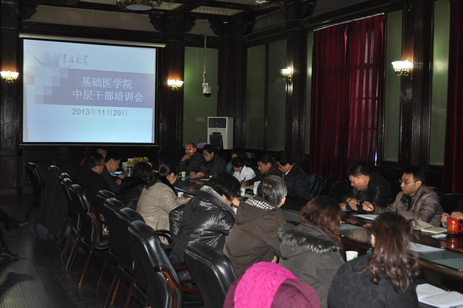 在四楼学术报告厅召开中层干部培训会。学院党委书记孙赵华、院长孙连坤等全体领导班子成员,学系、中心、教研室主任、副主任,全体行政管理人员参加培训会。培训会由孙连坤主持。