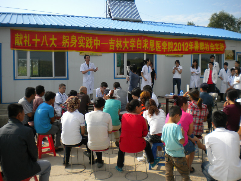 副校长兼白求恩第一医院院长王冠军和东丰县县长滕宝春等领导也来到社会实践活动现场,参与了大家的活动。在空闲的时候,王校长亲切的与乡亲们交谈,询问了新农村的生活和医疗状况。同时王校长也语重心长的告诉同学们,现在的新农村与过去的农村大不相同了。当年农村的卫生条件也是同学们想象不到的。虽然现在新农村建设已经取得了非常大的成就,但是农村依然没有改变缺医少药的现状,同时农村居民对疾病的防范意识仍然不够。通过这次活动,一方面希望两岸同学们进一步了解现在农村的现状,提高农村居民的保健意识,另一方面希望促进两岸学生交流,相互学习,取长补短。无论走到哪里,在未来的医学实践中,作为医学生要重视弱势群体的医疗卫生,关注、重视卫生知识的宣传。