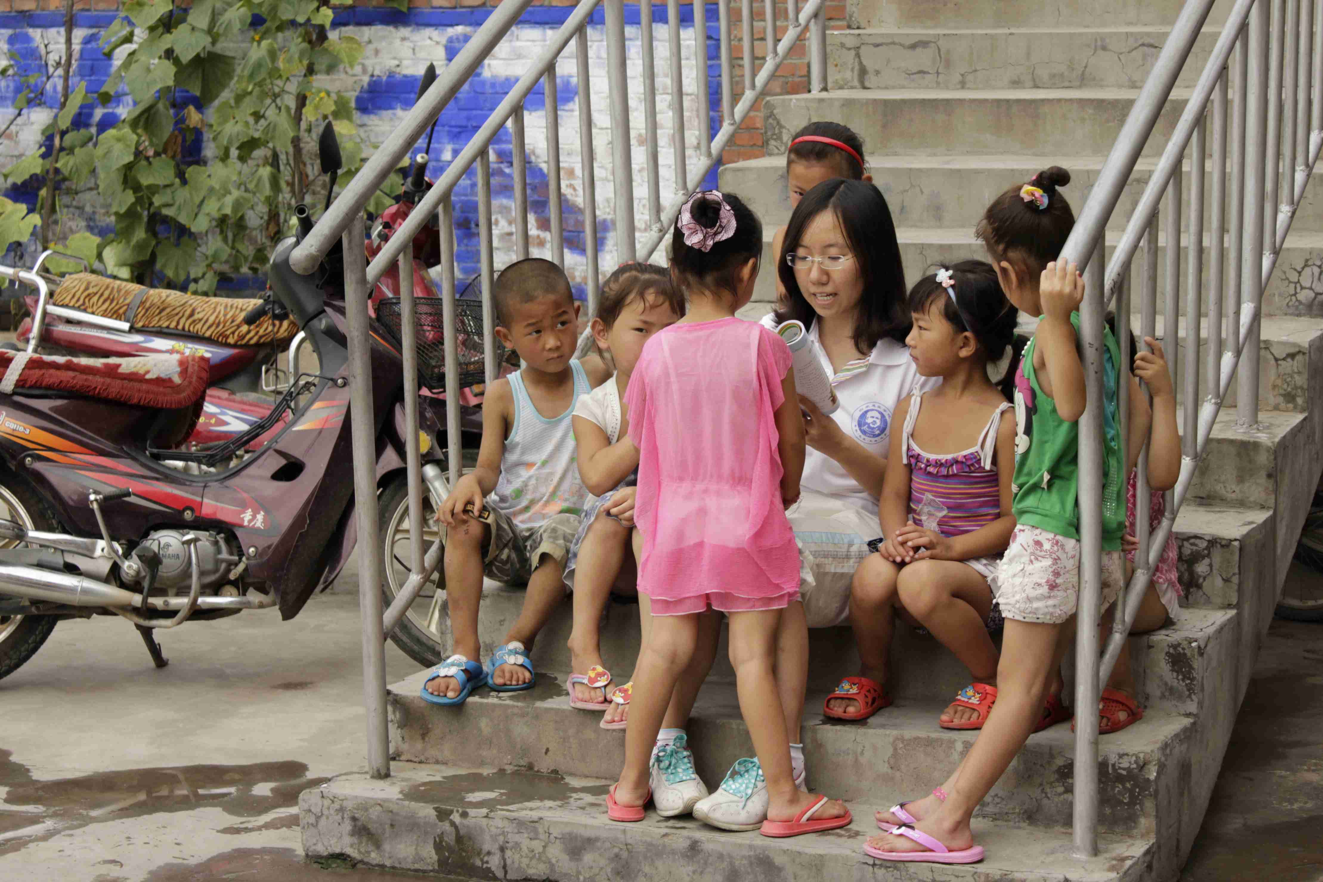 这里的孩子丝毫没有城里孩子的娇气,有个叫甄丹妮的女孩子,不小心摔倒了,腿上破了好大的一块儿,她一点都没有哭闹,而是坚强地从地上爬起来,继续玩耍。上午阳光很强烈,队员们很快就汗流浃背,但是,没有一个人在乎,也没有一个人在树荫下乘凉,那种对孩子们的喜爱和关怀,驱使所有队员在烈日下和孩子们又蹦又跳,又跑又闹。这是一片欢乐的海洋,到处都洋溢着白医学子浓浓的对家的眷恋与热爱。