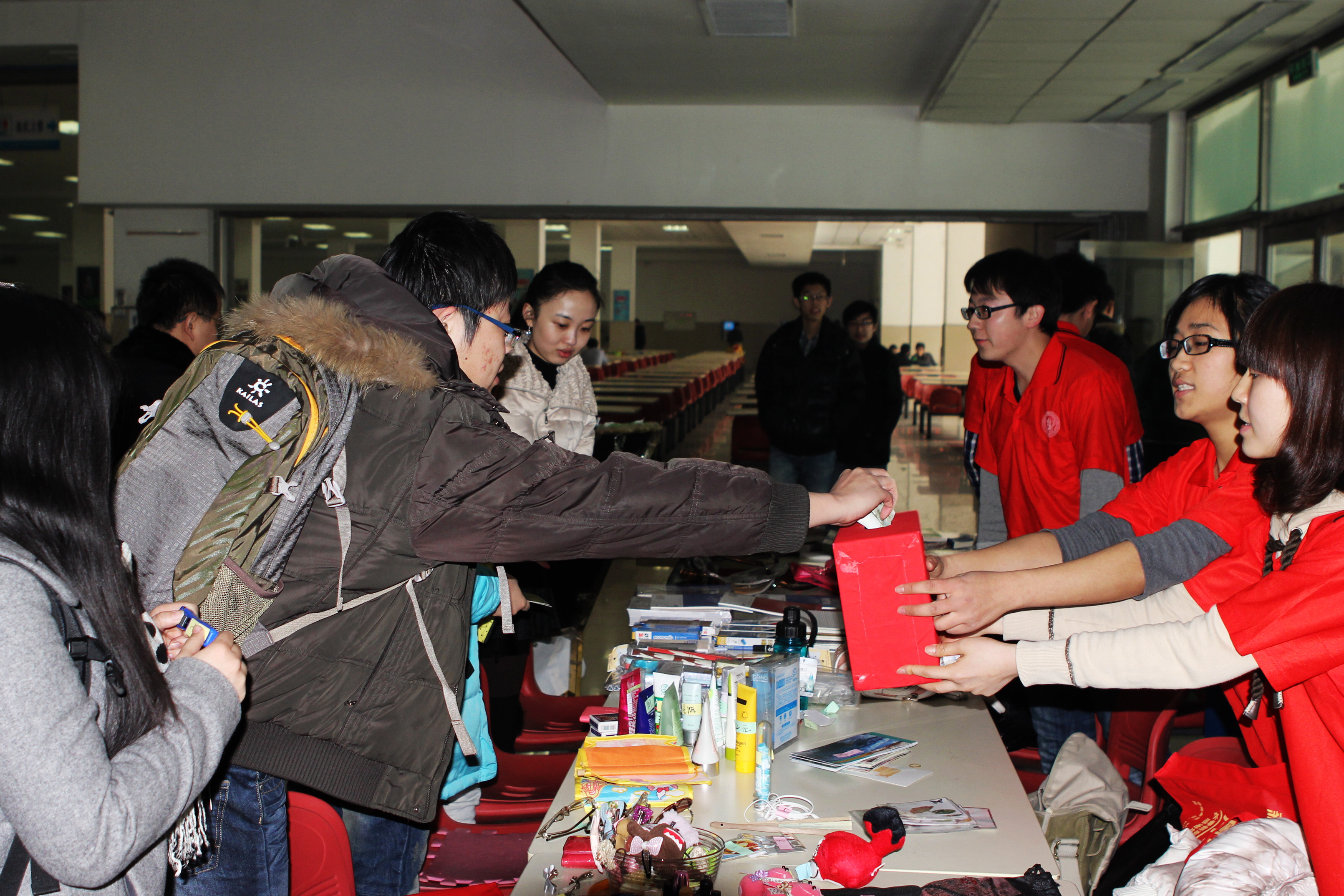 前卫南区新食堂一楼进行了爱心义卖活动。义卖的物品包括同学们捐出的自己的书本、衣服及班级干部从批发市场买回的学习用品。3月9日,团委书记夏燕来、辅导员魏宇航及701002团支部成员来到了长春市儿童福利院,向福利院捐赠出义卖的全部所得。同时,701001团支部及701105团支部也展开了义卖活动。701006团支部则兵分三路,分别来到长春市朝阳区晚祥宁敬老院看望孤寡老人,来到长春市第二十六中学和那里的同学们一起学习雷锋,来到同志街附近宣传普及雷锋精神。701104团支部来到香港色情片