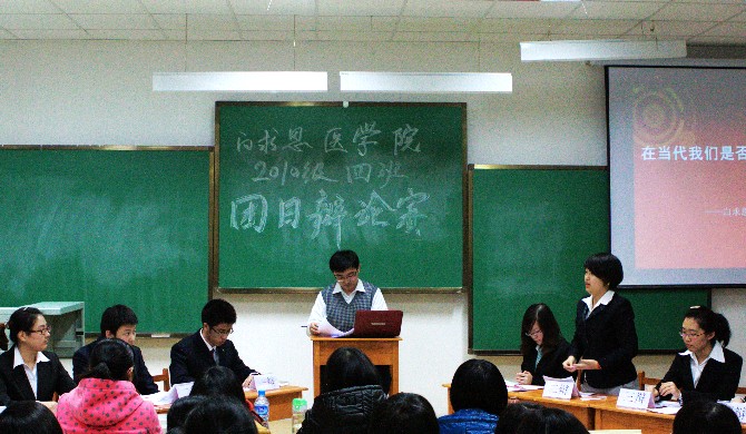 在全院如火如荼地践行雷锋精神的同时,白求恩医学院701004,701007,701103团支部则立足当下,结合热点时事问题,针对雷锋精神在新时代的思想内涵进行了辩论。其中,701004团支部的辩题为“当今社会应不应该学习雷锋”,正反双方围绕社会上热传的雷锋事迹存在过度夸张与炒作,雷锋照片明显摆拍的问题展开了激烈而精彩深刻的讨论。并制作了以“爱心传递”为主题的短片,全班同学积极参与,让雷锋精神深入人心,让学习雷锋不再是走形式走过场的作秀,得到了老师及同学的广泛认可。
