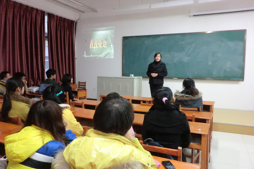 基础医学实验教学中心副主任、博士生导师陈霞教授同所带班级701103班全体同学在中心校区李四光楼110教室举行师生见面会。