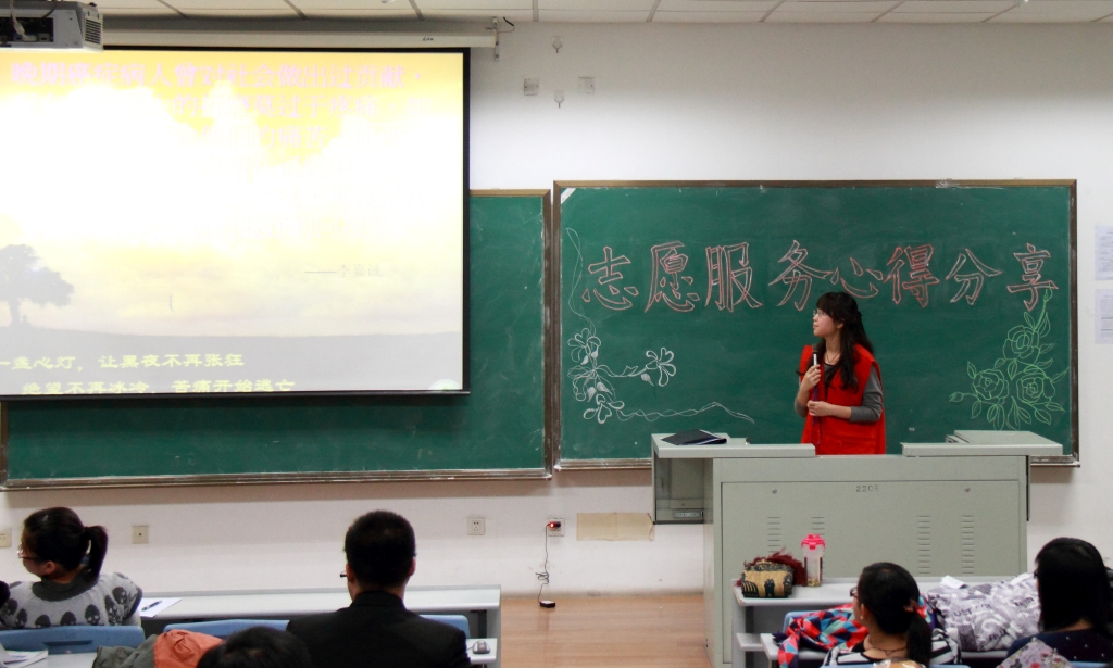 首先,孙天华代表白求恩青年志愿者协会对本学期开展的所有活动进行了简要介绍。随后,门诊志愿服务、爱心送药志愿服务、特殊儿童学校志愿服务、明德小学校外辅导员志愿服务活动的志愿者代表相继上台,与大家分享了参与志愿服务的特殊经历与真实感悟,他们表现出对志愿服务的强烈热情和高度责任感,并表示通过志愿服务活动体会了感动、收获和成长。志愿者们的奉献精神感染了到会的每一个人,分享会在热烈掌声中结束。