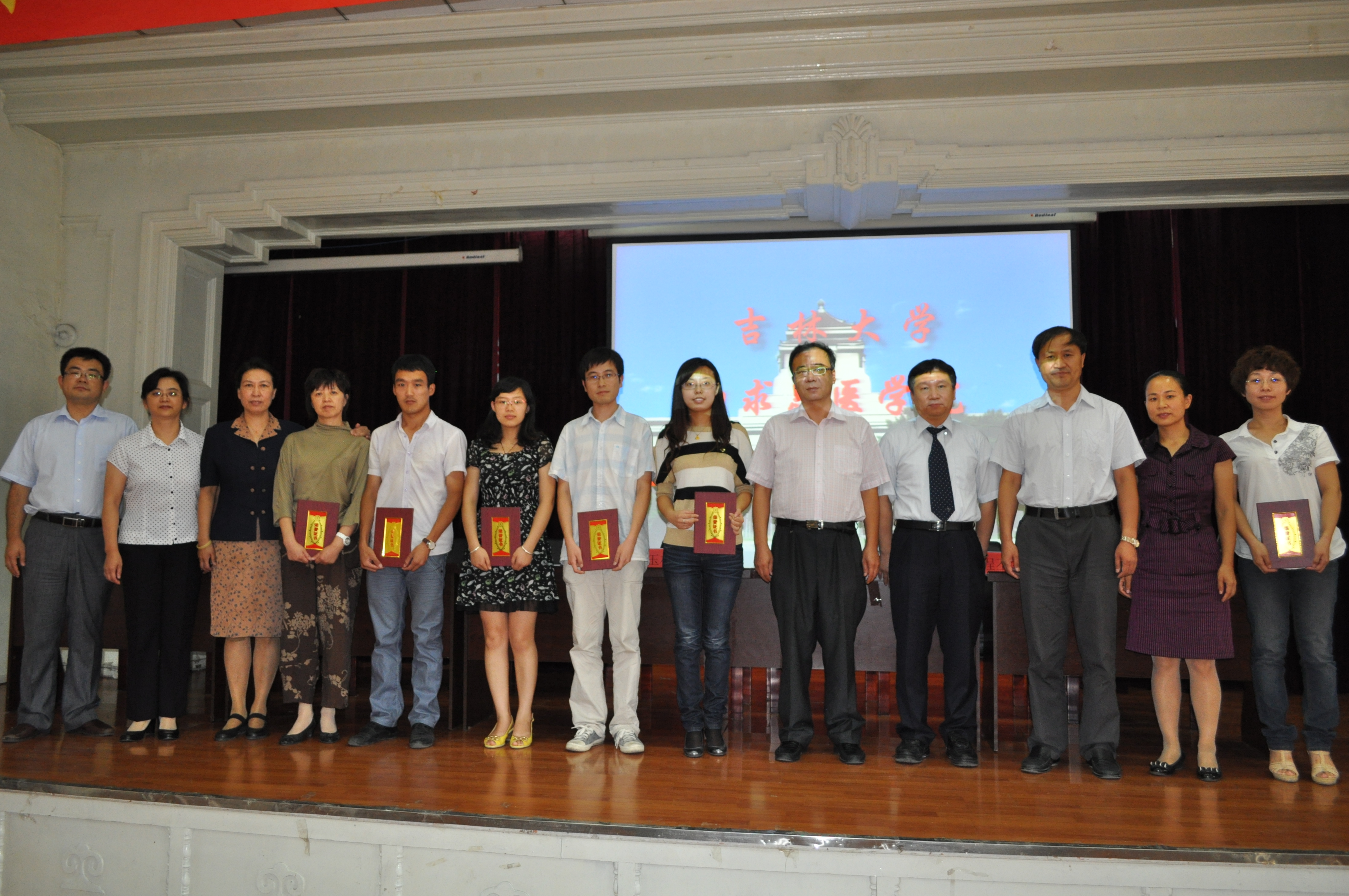 白求恩医学院对2011年吉林省优秀硕士论文获奖者及指导教师、2011年学院优秀博士学位论文获得者和优秀指导教师的表彰决定,学院领导为获奖者颁奖。