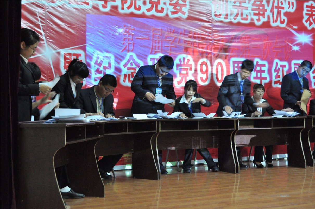 最后,大会在激昂的校歌中结束。整个过程中全体学生代表秉持负责、公正、严谨的态度进行表决与投票,充分体现了在学生代表大会中学生民主行使权利、学生代表学生这一基本原则。会后701004班的李博然同学感慨的说:“学生代表大会充分体现了学生的民主权利,相信在未来的日子里,白求恩精神一定会源远流长,白求恩学子一定会锐意进取,自强不息,荣辱与共!”