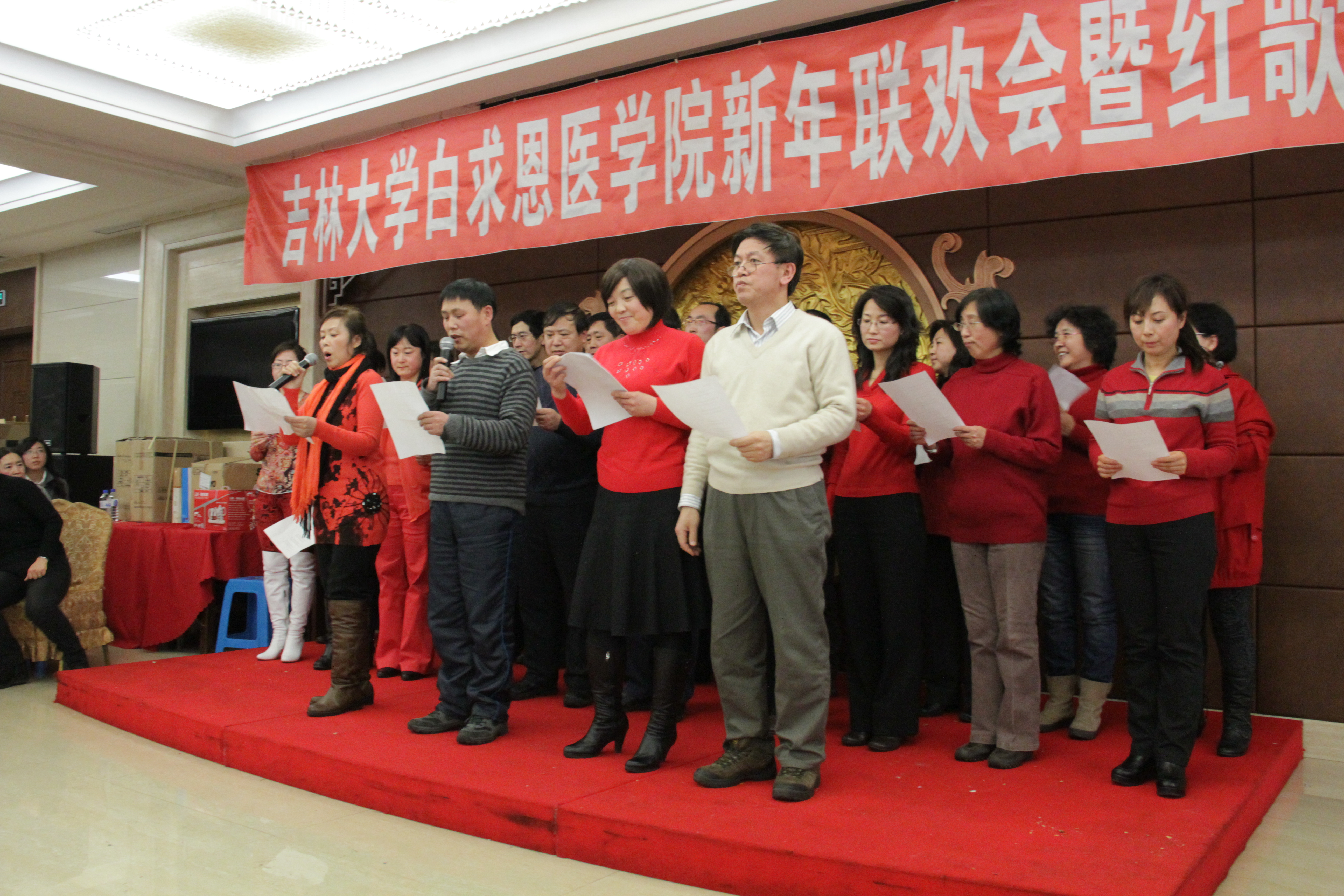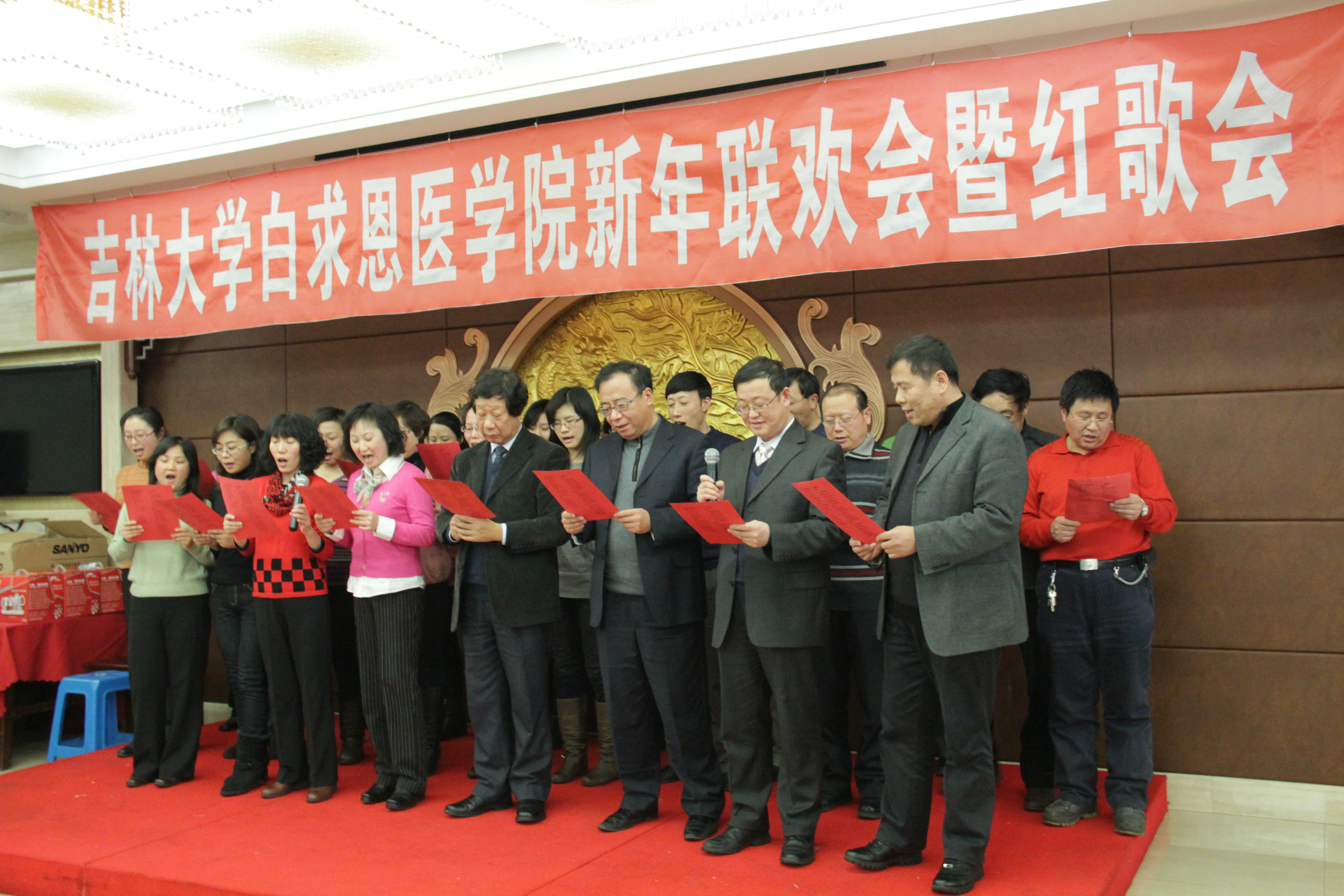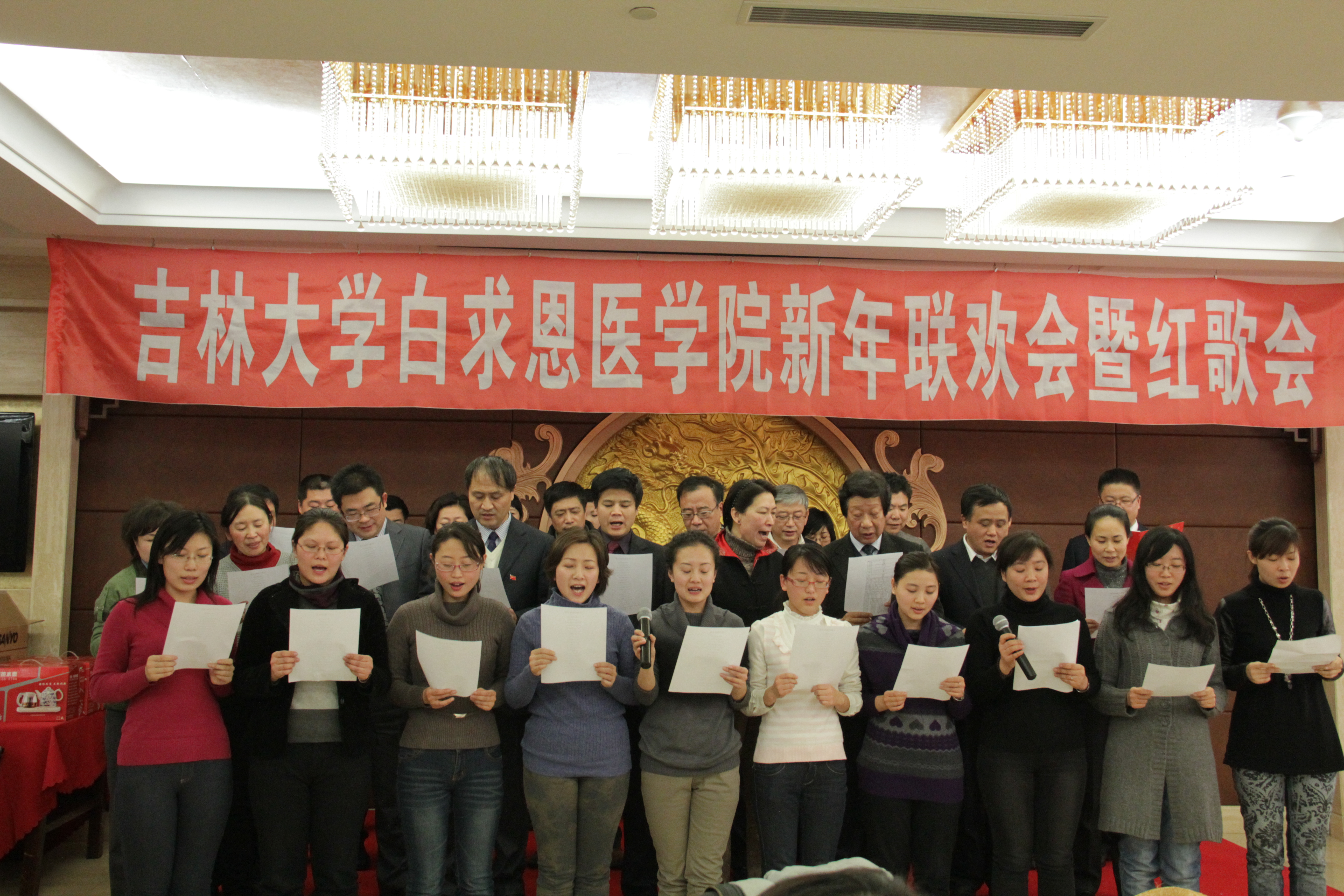 寅虎喜笑去,玉兔踏歌来。12月29日下午1点30分,白求恩医学院行政、工会共同本着节约、务实、和谐、发展的原则,组织召开了2011年新年联欢茶话会暨红歌会。
