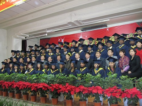 白求恩医学院首届暨2005级全英授课留学生毕业典礼在新民校区举行,48名来自巴基斯坦、索马里和印度的临床医学专业毕业生在校领导和老师的共同见证下顺利毕业。