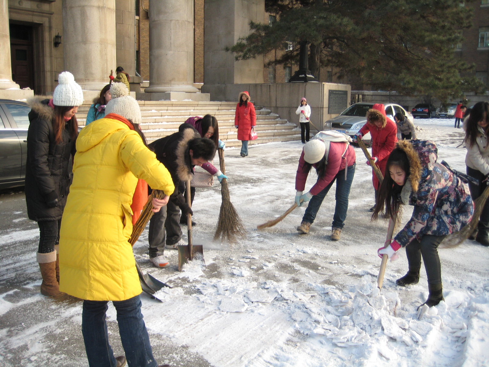今冬第一场大雪后,学院免疫学系曾组织师生进行过一次义务清雪劳动,为师生奉献爱心,提供安全保障。