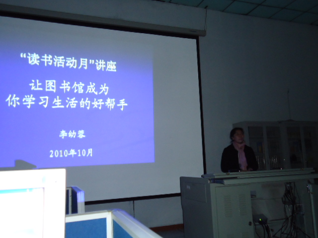 10月21日晚6时,白求恩医学院2010年“读书活动月”明珠拭尘系列讲座之——“让图书馆成为你学习生活的好帮手”在新民校区图书馆三楼会议室举行。新民校区图书馆副馆长王杰英、副研究馆员李幼蓉老师出席了本次讲座。