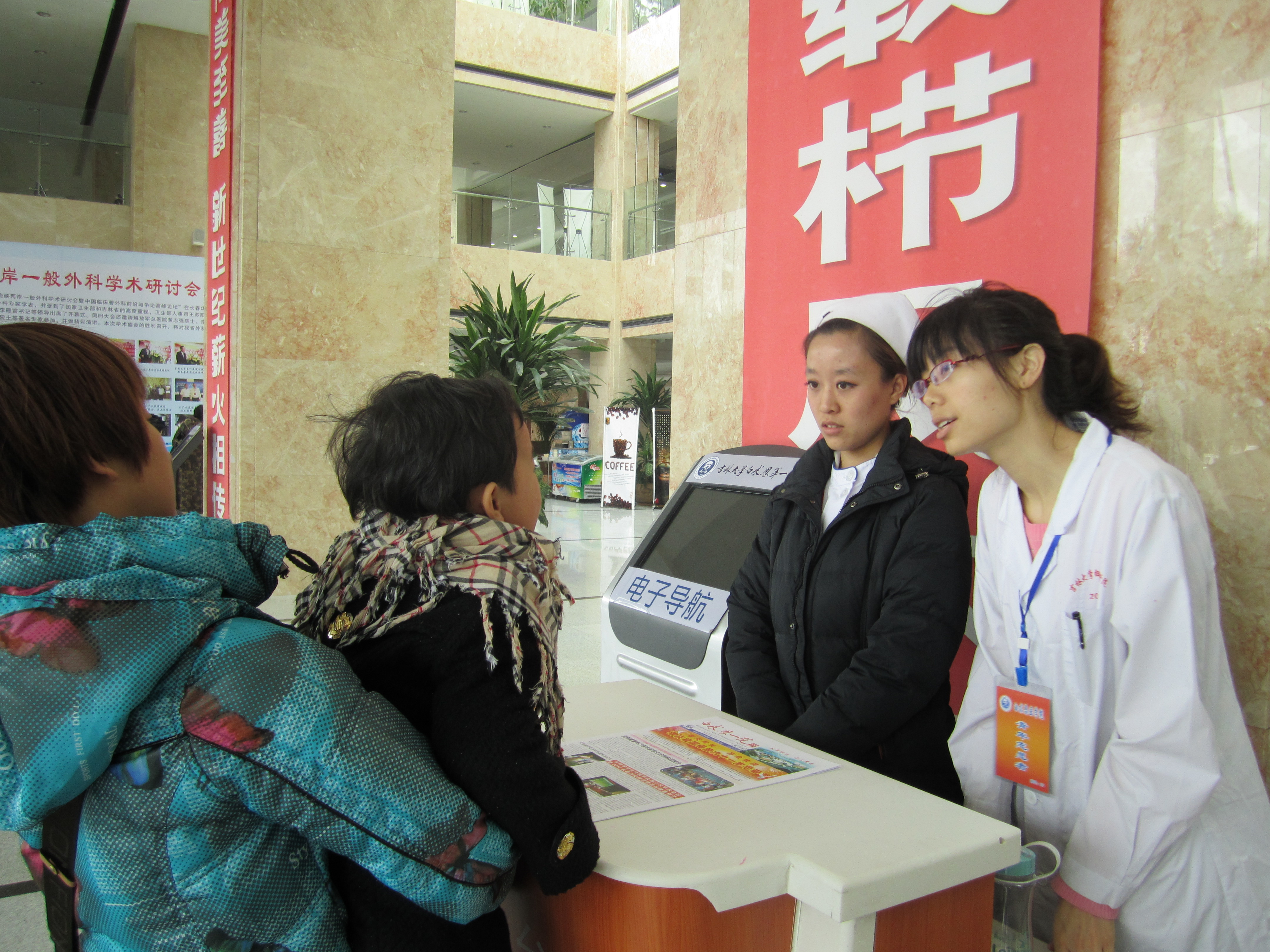 在接受了岗前培训后,志愿者分别走上各自的岗位开始了短暂的导诊和分诊工作——为患者指路、解答挂号方面的疑问、帮患者量血压等,志愿者们不但把在课堂上学到的知识充分的应用到了实践中,大部分志愿者还在医院工作人员的细致讲解下,学会了如何使用相关的医疗器械,为今后从事医疗事业积淀了一定的基础。