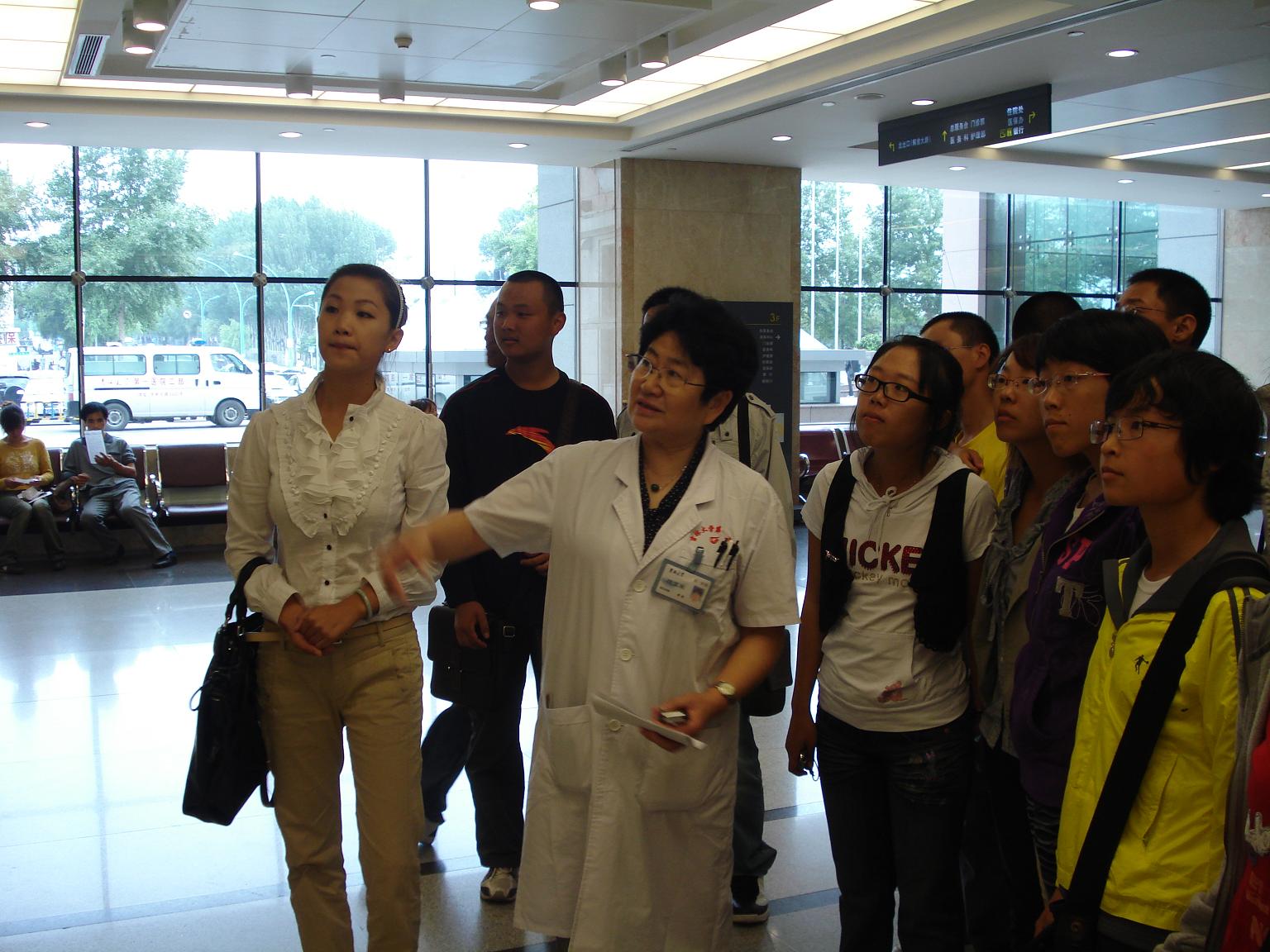 医学事业的发展史,告诫同学们要谨记历史、不忘先辈功绩,并与全体同学合影留念。随后迟教授和同学们来到环境优雅的病人休息区,在这里同学们充分感受到了白求恩第一医院以病人为中心的良好氛围。最后迟教授带领同学们参观了检验科、内镜中心、眼科以及儿科,为同学们详细介绍了医院的情况。