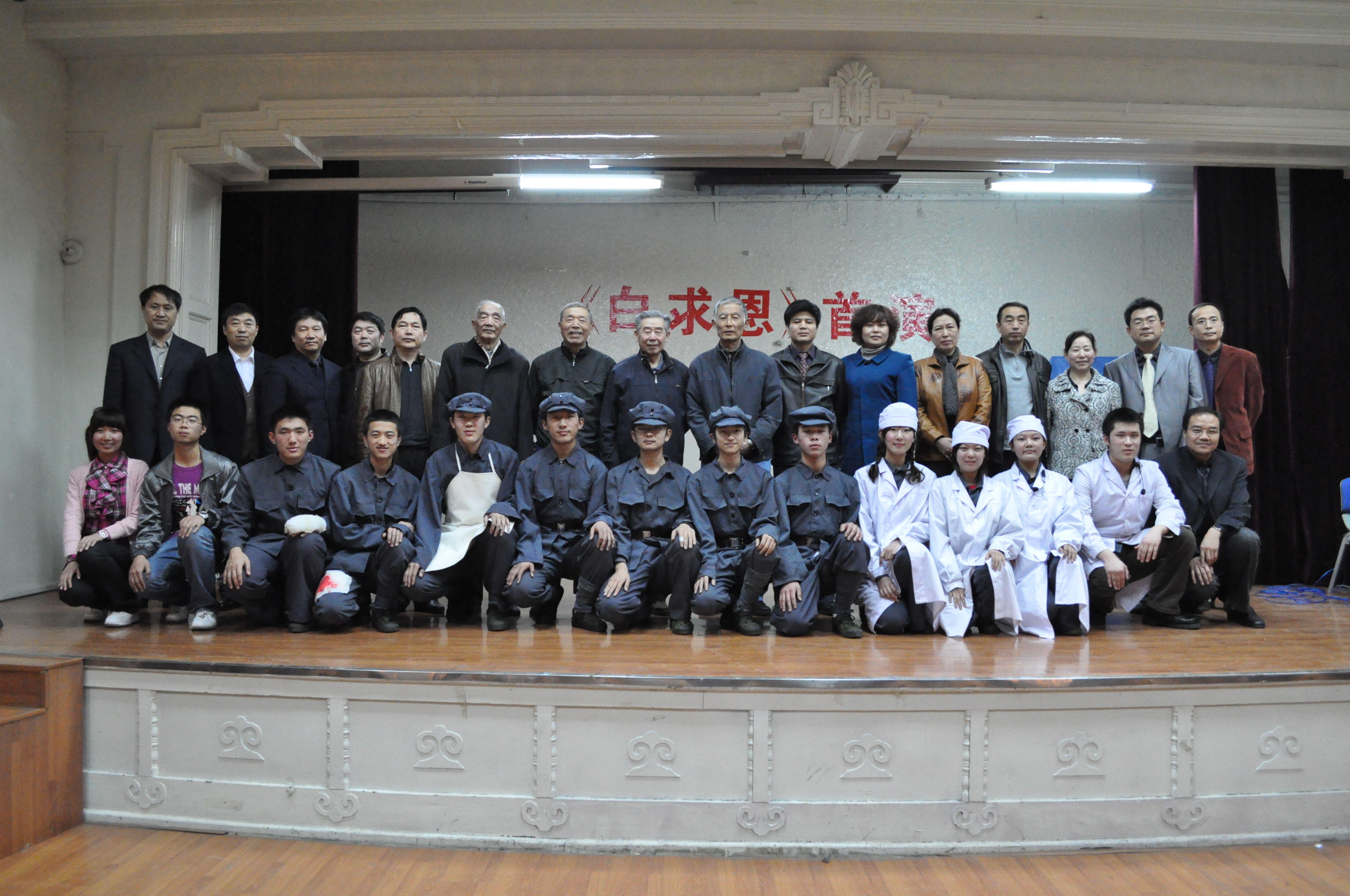 随后进行了话剧《白求恩》的首演。《白求恩》是白求恩医学院学生自编自导自演的话剧,话剧从不同的角度演绎了白求恩对伤员的认真负责、对医学的严谨求实、对战友的手足情谊以及对中国抗日战争做出的突出贡献。《白求恩》的首演掀起了本次文化节开幕式的高潮。同学们对白求恩精神的深刻领悟和精彩演绎震撼了现场所有观众,细腻的表演技巧、情感的真实投入、振奋的经典旁白,博得了现场经久不息的掌声。现场的同学纷纷表示作为白求恩的传人一定会在白求恩精神的感召下,求真务实、严谨细致,秉承白求恩品质,传承白求恩精神,早日成为祖国建设的栋梁之才。