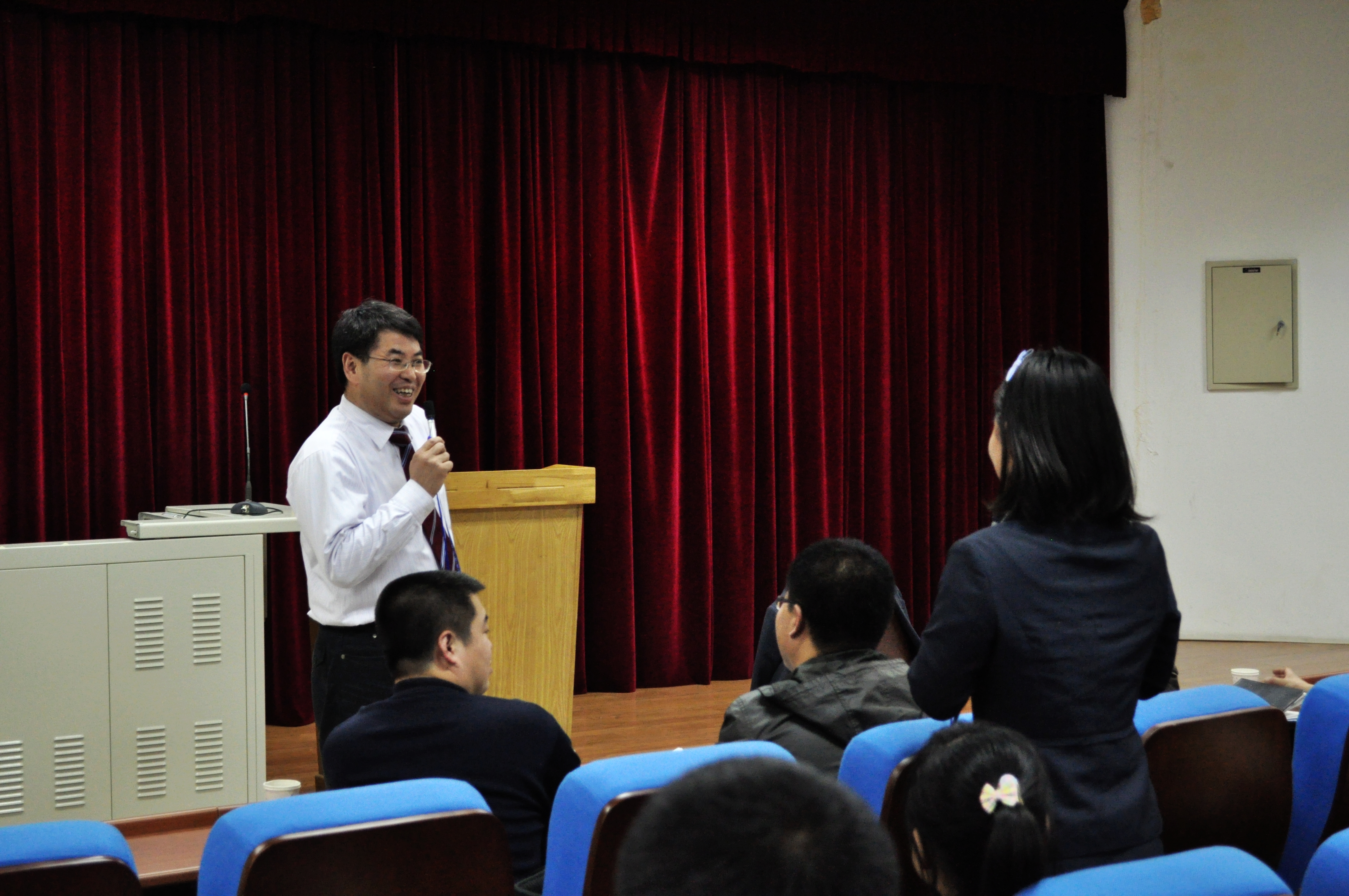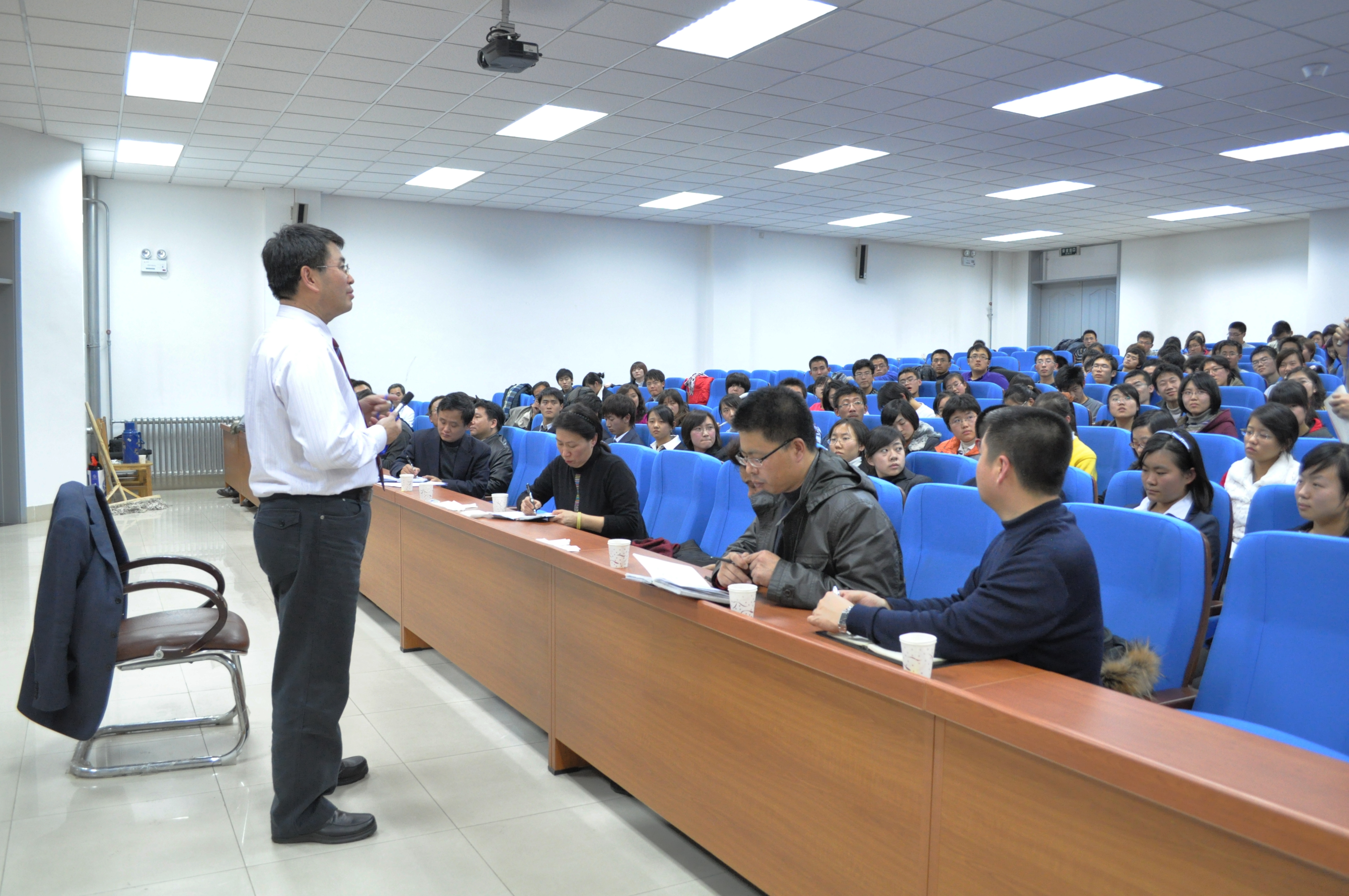 展涛校长在讲话中首先对白求恩医学班的同学们提出了几点要求,希望他们正确看待自己的身份,七年制和白求恩医学班(八年制)都是医学生,白求恩医学班的学生应该肩负更多的使命感和更多的责任感,而不是优越感,一定要牢记学校的辉煌历史,继承和发扬学校的优良传统,凭借优质的硬件条件和丰富的资源,成为白求恩精神的传承者。此后,展涛校长以“钱学森之问”和“如果你是校长,如何培养学生的创新能力”引出了如何培养科技创新人才的问题,与白求恩医学班的同学们就如何提高学生的创新能力进行了交流。