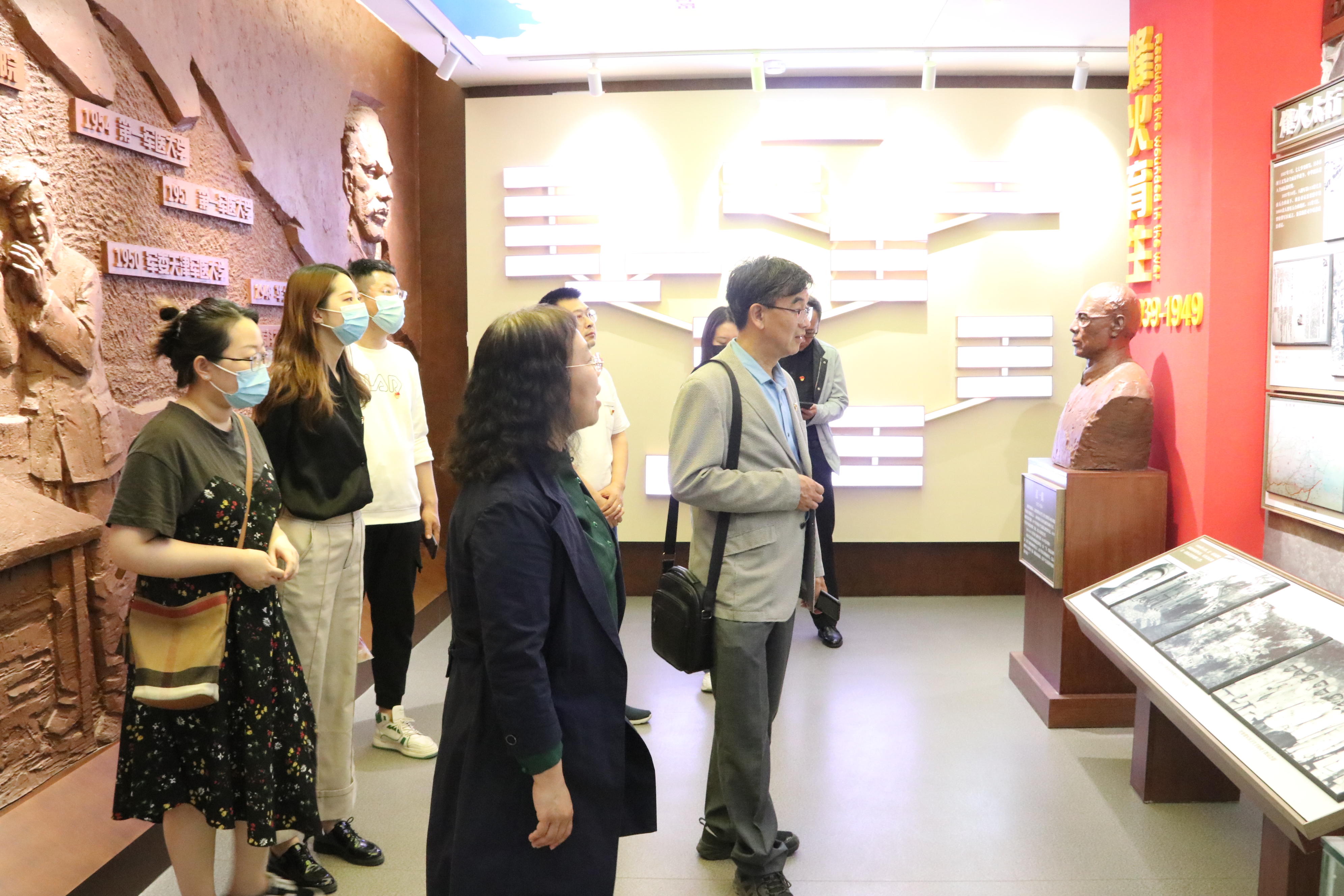 大家跟随着讲解员参观了纪念馆,一楼主要是校史沿革图以及整个学校的建校经历,1939年的老白校在烽火中诞生,在解放战争中成长,在和平建设时期稳步发展,了解了学校自1938年的医疗训练队经多次发展合并为现香港色情片