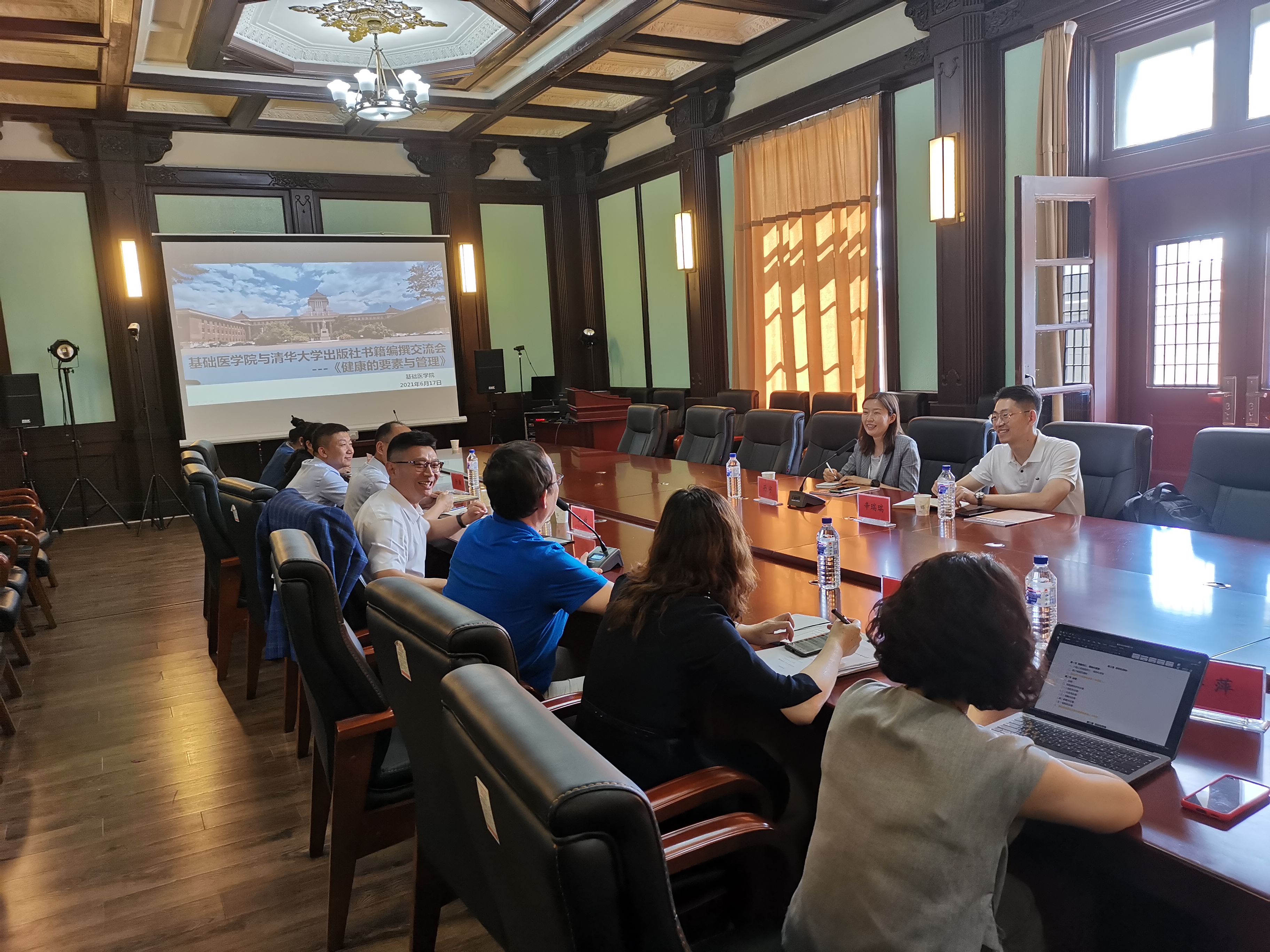 特色的系列专业教材。随后,孙连坤教授介绍了《国际老年学杂志》杂志社的优势与面临的挑战。孙宇社长以清华大学出版社为例,就杂志社如何稳定发展并提升杂志质量与影响力的问题,分别从编辑团队建设、学科专家团队建设、如何提高稿源质量等方面提出了重要的指导意见,她同时提出“杂志发展要优于新意有特色,不能落后于时代。”接下来,孙宇社长同我院专业教材编委组成员老师,就医学教材出版情况及教材撰写细节进行了深入细致的沟通交流。最后,孙宇社长团队参观了我院病理组织样本库、病原生物样本库及解剖学教研室,并对如何将我院丰富的样本资源数字化并编撰出版提出了指导建议。