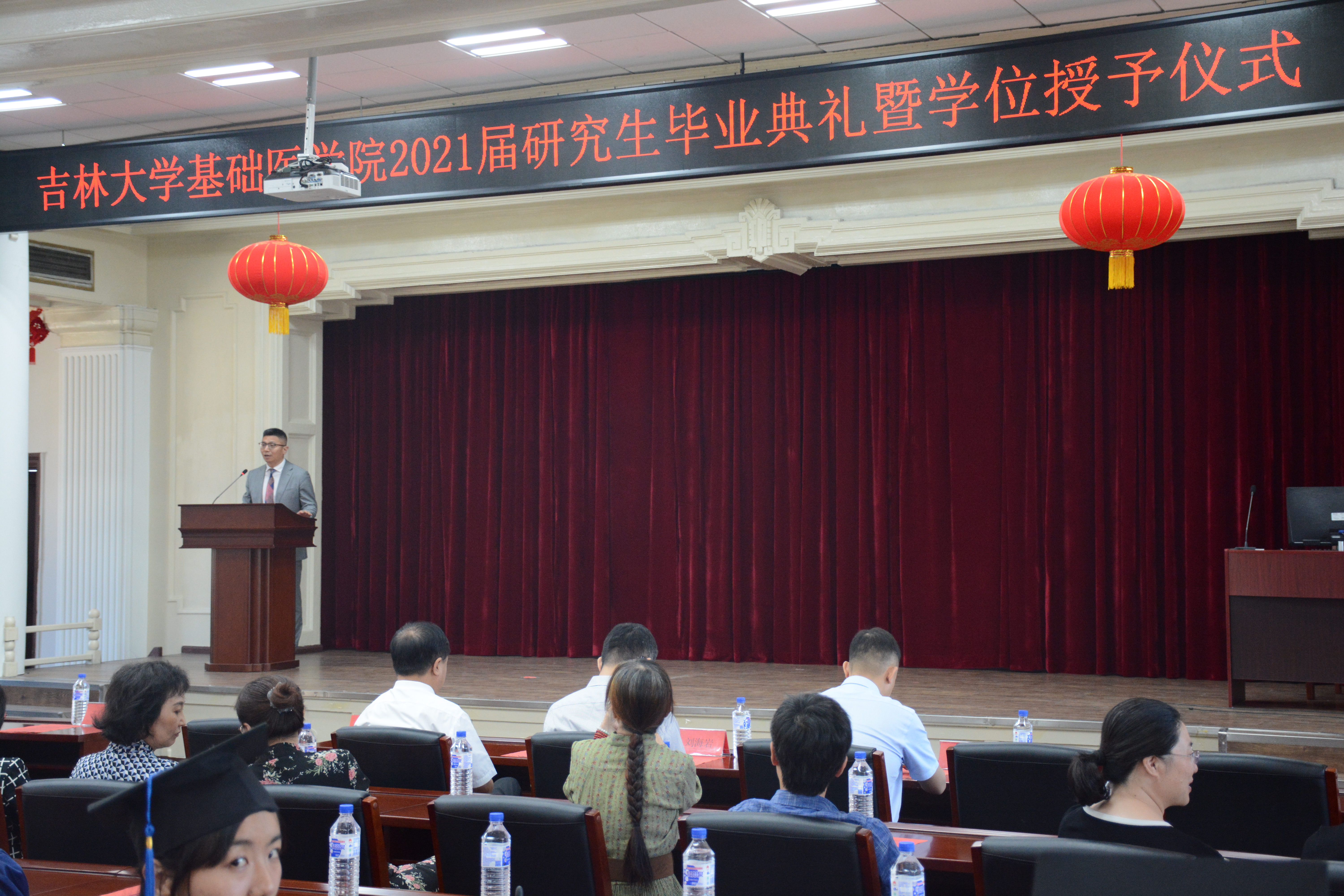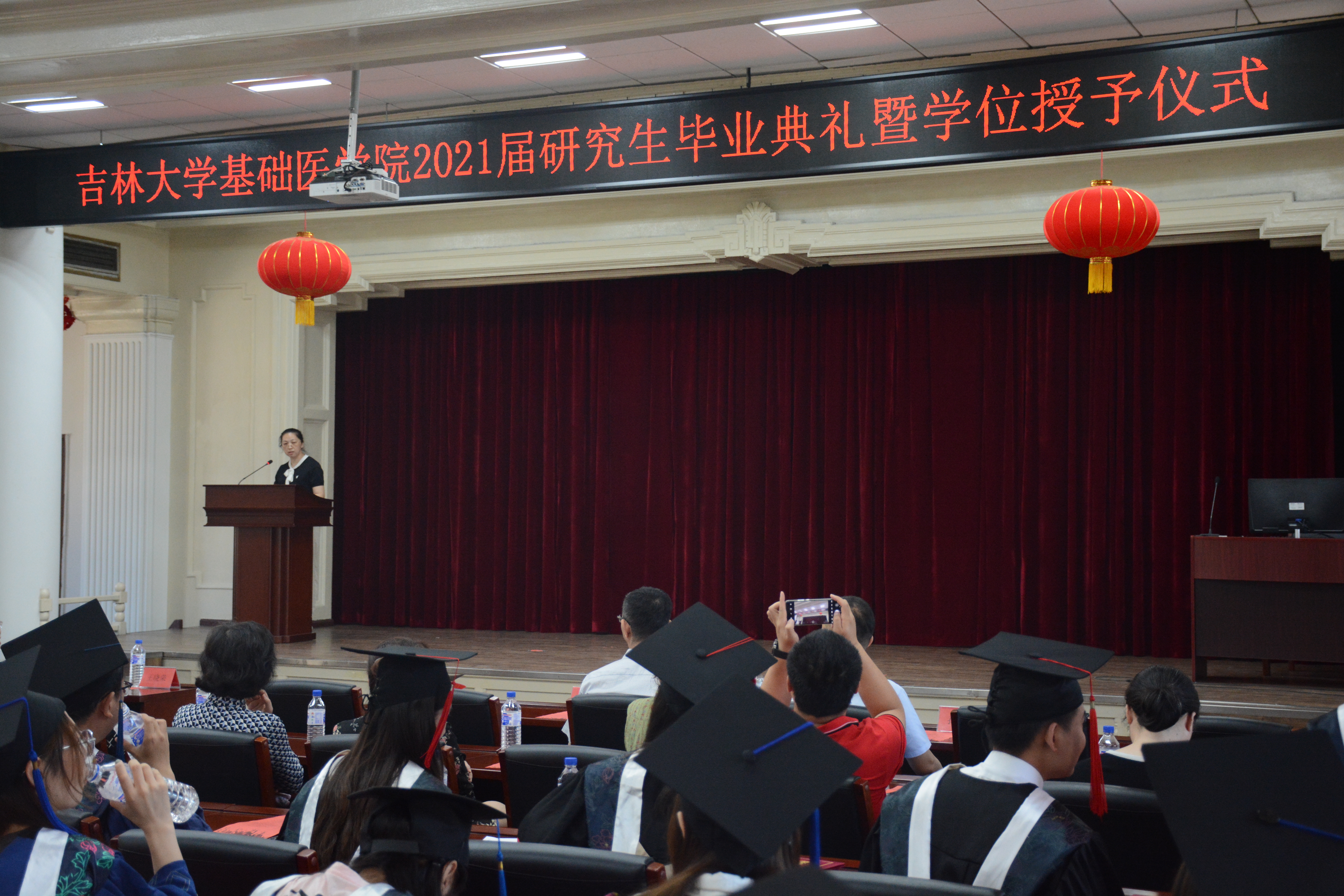 二楼报告厅隆重举行。院长王放、党委书记王晓荣及班子全体成员、基础医学学位评定分委员会主席孙连坤,各学系教研室主任、党支部书记、研究生指导教师、研究生办公室老师和全体毕业研究生出席。毕业典礼由副书记曹国丽主持。