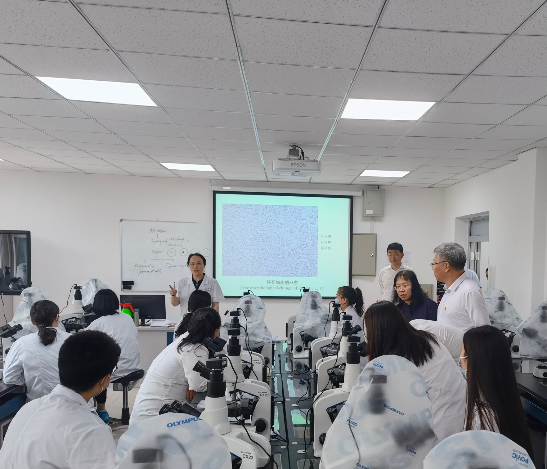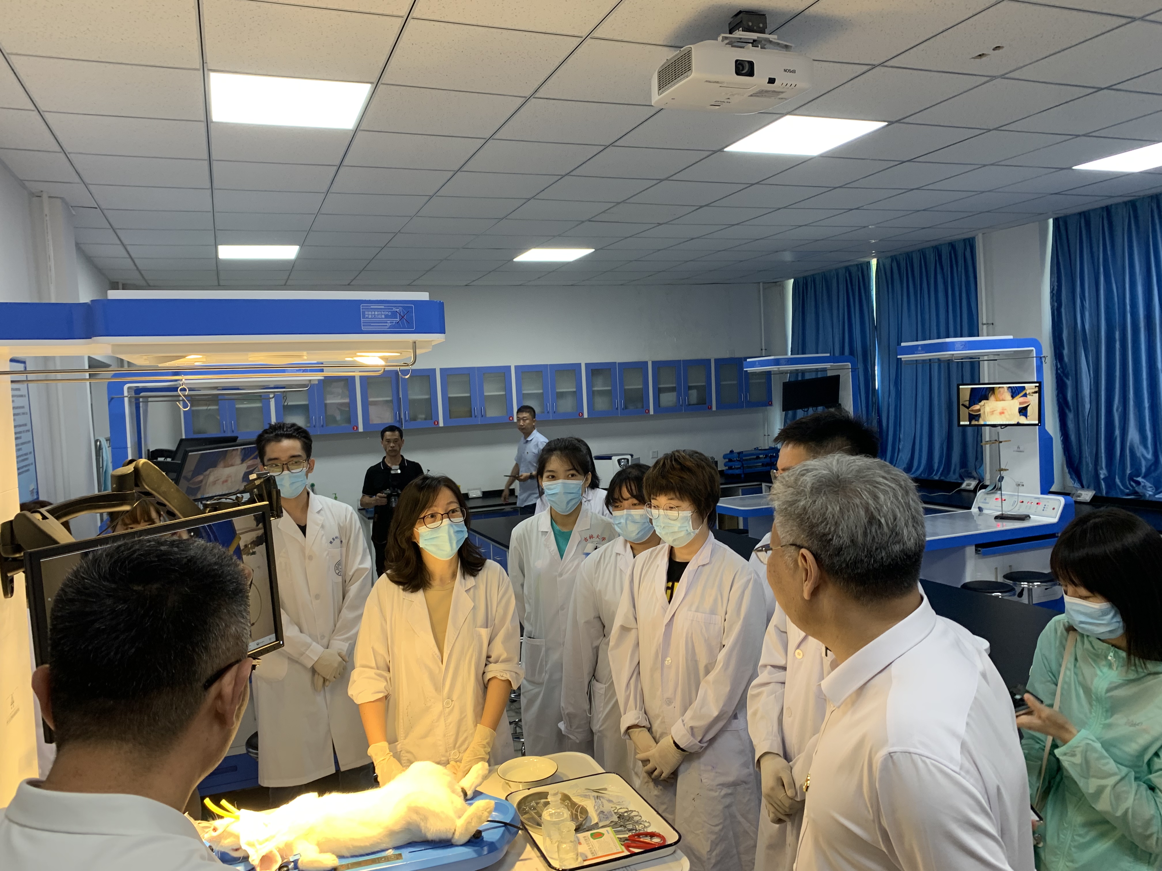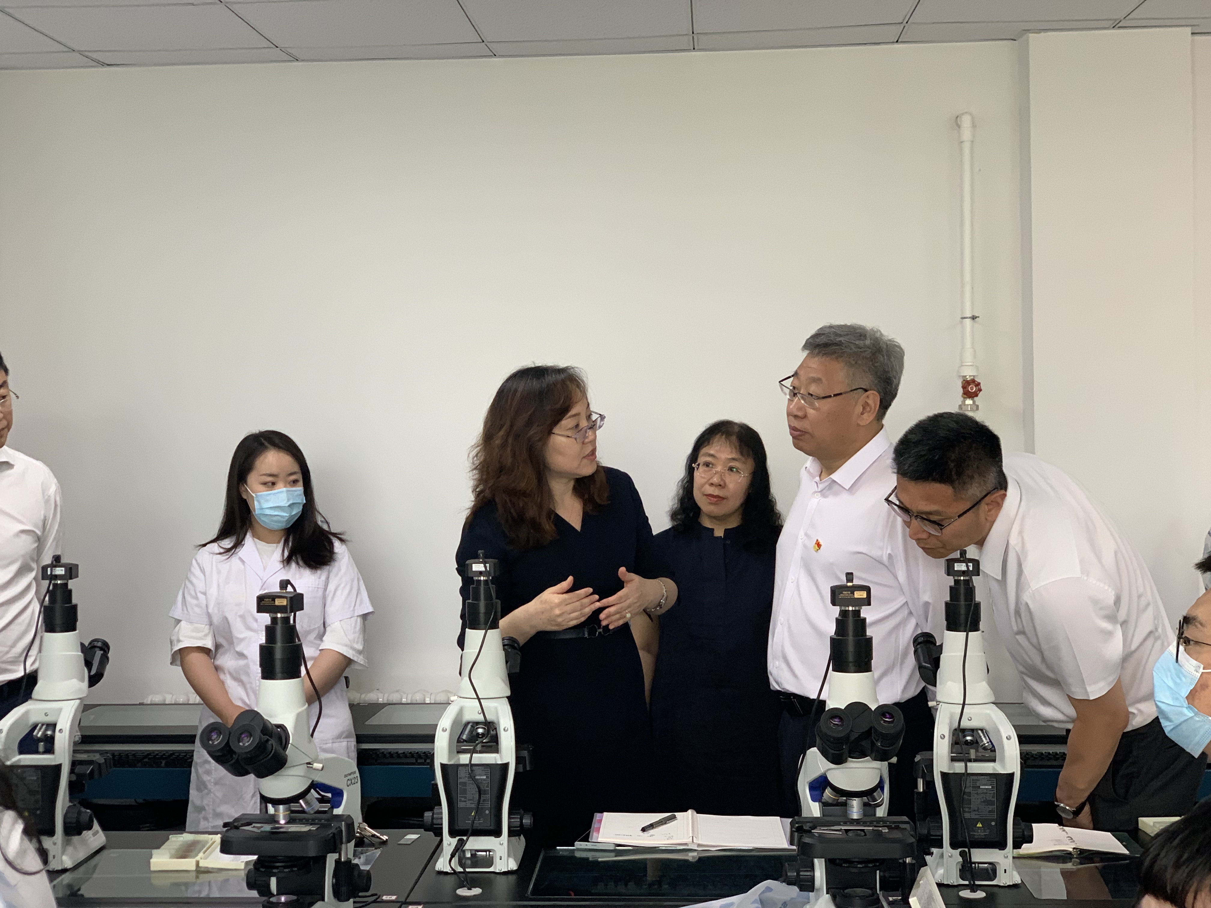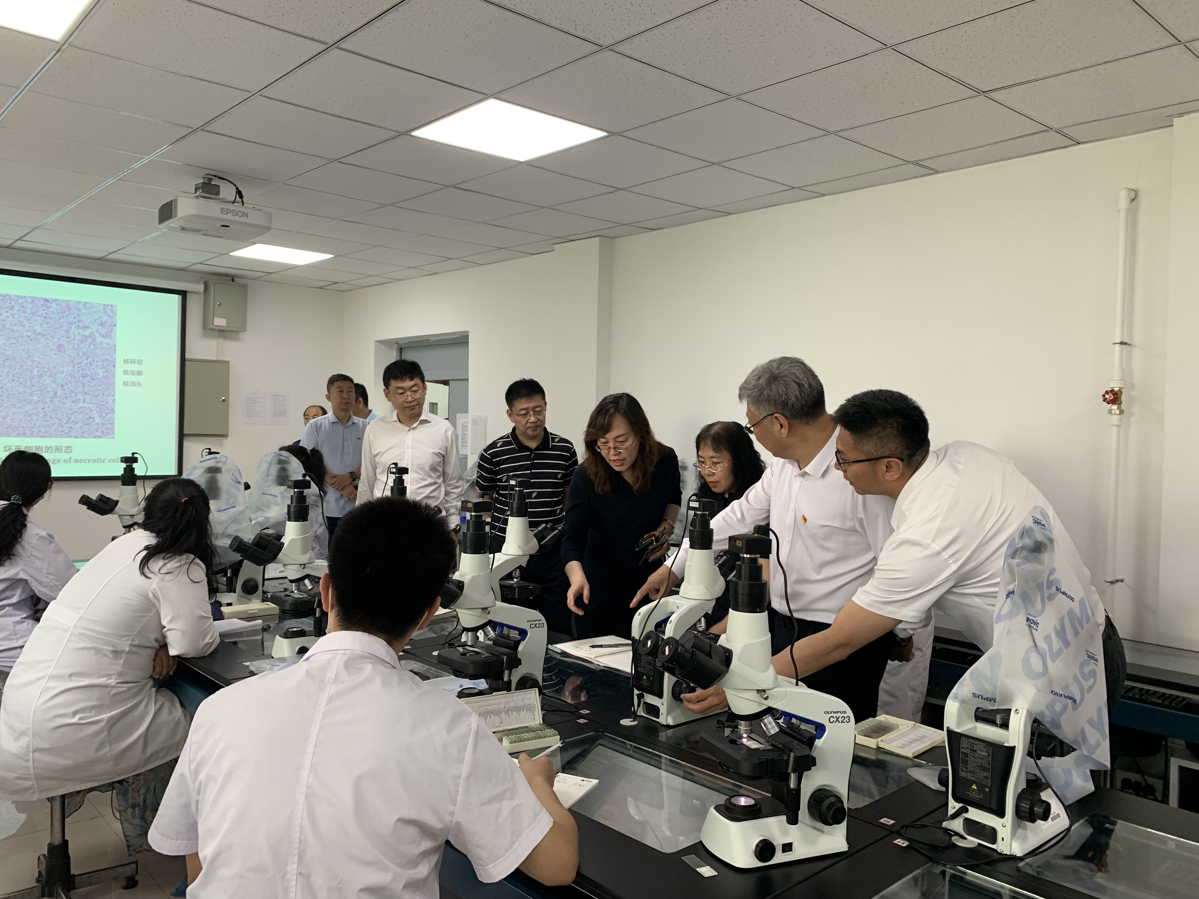 院长王放的工作汇报,随后,走进实验室向师生表达问候。在可移动实验平台,于蕾老师和学生们正在做的家兔呼吸运动的调节手术演示实验,学生可通过清晰的大屏幕看到手术演示全过程,真正实现互联互通,实时互动。在病理实习课堂,观摩了何旭老师“损伤的修复”课程,观看了学生的实验演示并亲切问候同学们的学习状况,病理生物学教育部重点实验室主任、副院长辛颖向冯书记介绍了病理学形态实验的相关情况。冯书记对同学们的实操能力给予了充分肯定。在分子生物学实验室,老师正在带领同学们进行转基因斑马鱼克隆实验。斑马鱼是国际上用于快速研究人类疾病信号传导途径、有效药物高通量筛选的最佳模式生物之一。冯书记对学院在斑马鱼方面的前沿研究表示肯定并寄予厚望,期待学院的斑马鱼研究能在探索人类疾病发病机理,筛选治疗靶点,进行新药开发以及药物毒性与安全性评价上发挥更大的作用。最后,冯书记一行来到医学影像虚拟解剖联合实验中心检查调研,参观3D打印白求恩像,观看了香港色情片