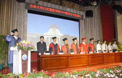 最后,白求恩医学院2009届毕业生进行了简单的重温医学生誓词仪式,毕业典礼在校歌中圆满落幕。