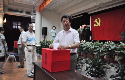 白求恩医学院委员会第一次党员大会选举办法”。学院办公室主任刘燕经大会表决通过作为总监票人主持了选举工作,经无记名投票,大会差额选举产生了十一名新一届学院党委委员。